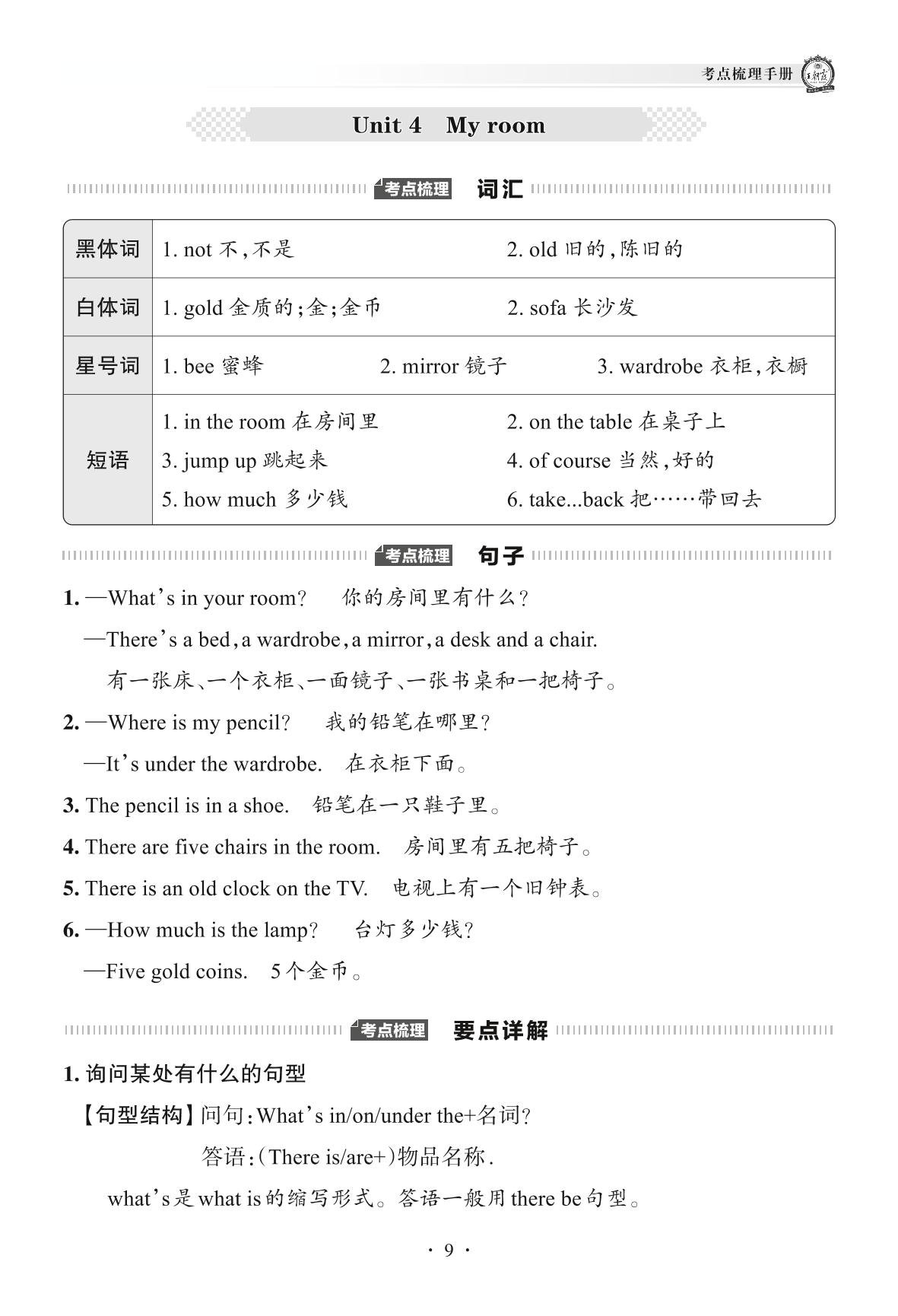 2022下册四年级英语剑桥版 单元考点梳理——Unit 4 My room _R220120105343617
