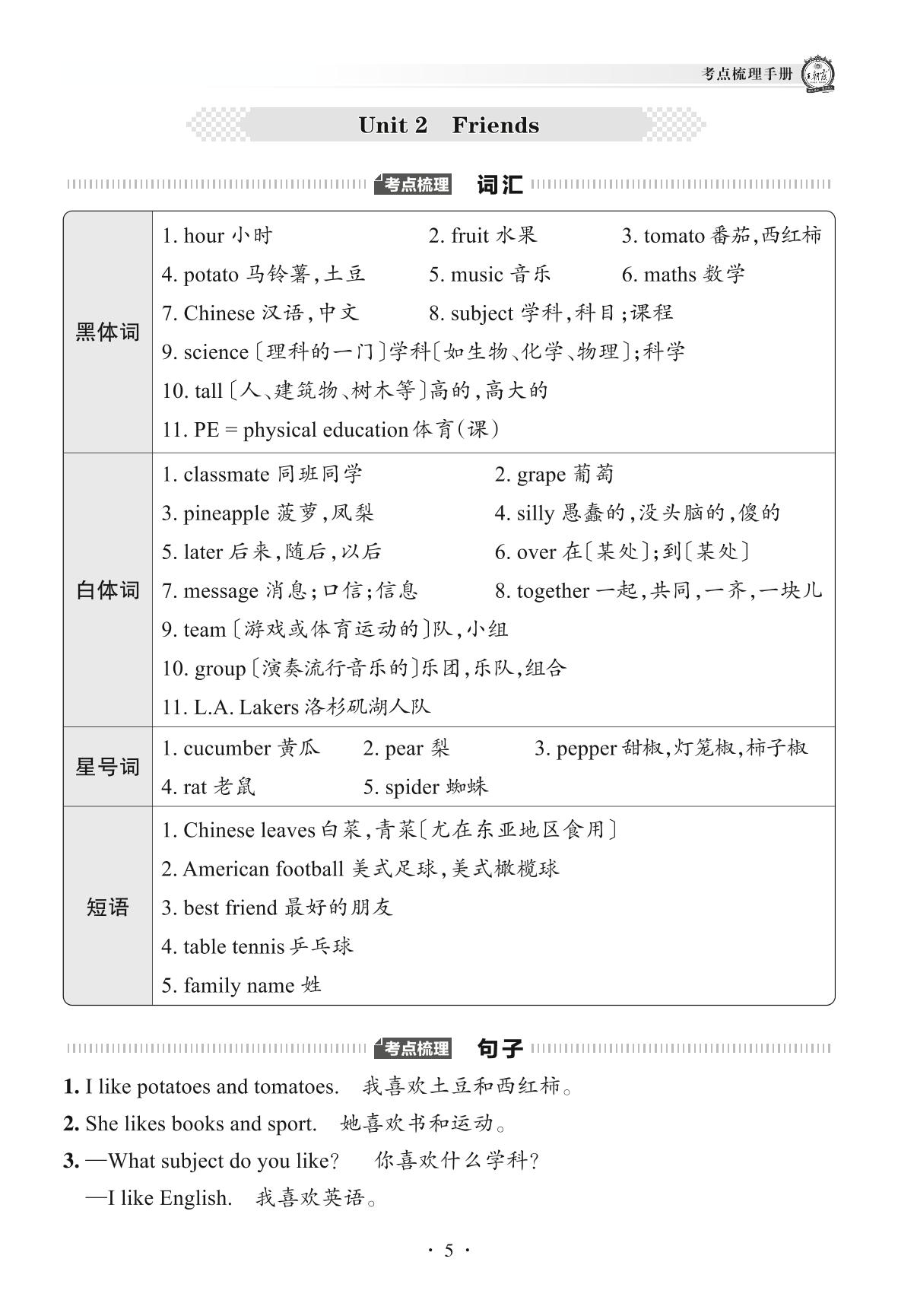 2022下册四年级英语剑桥版 单元考点梳理——Unit 2 Friends _R220120105343681