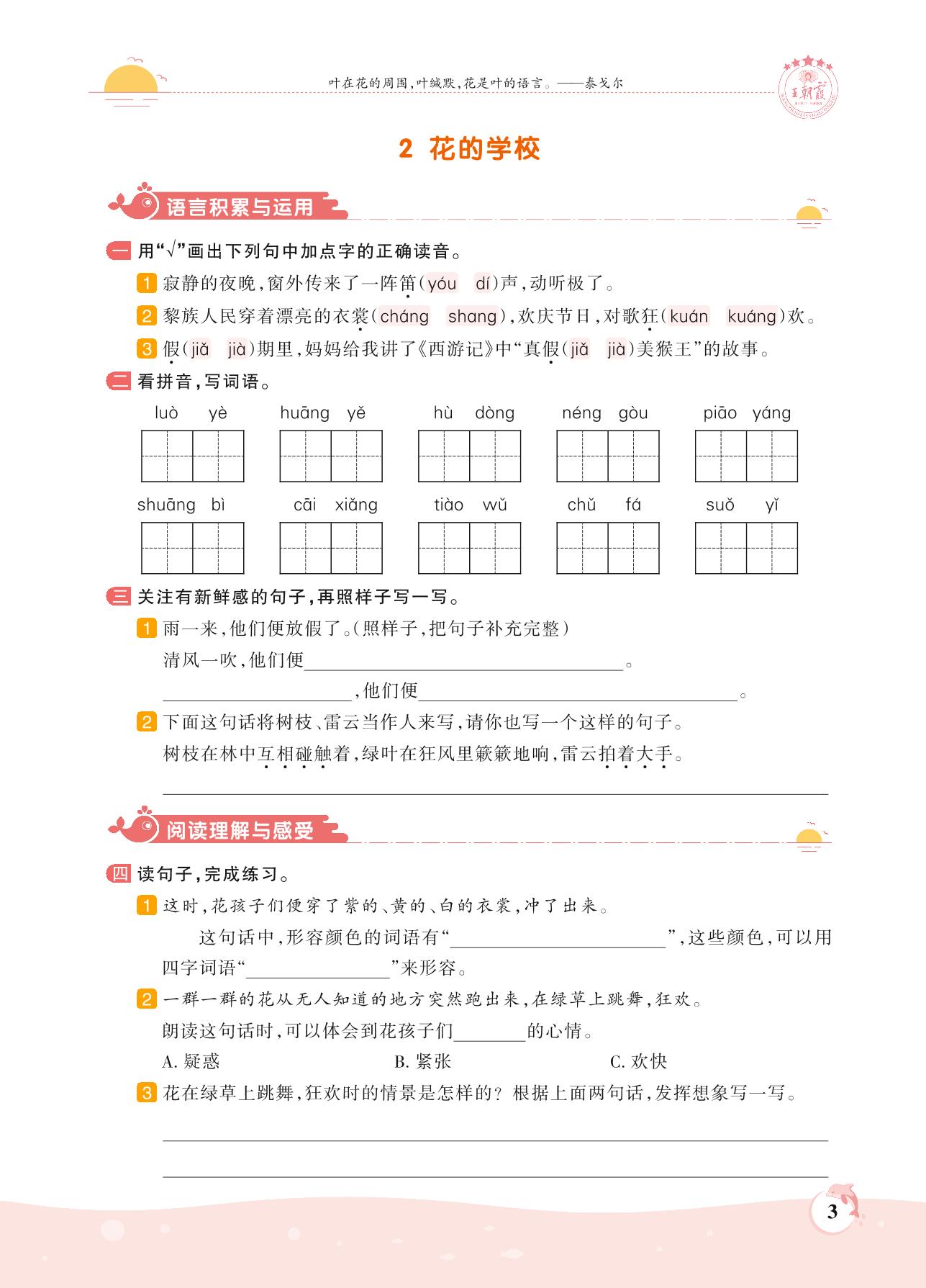 2021上册三年级语文人教版 第一单元——2 花的学校