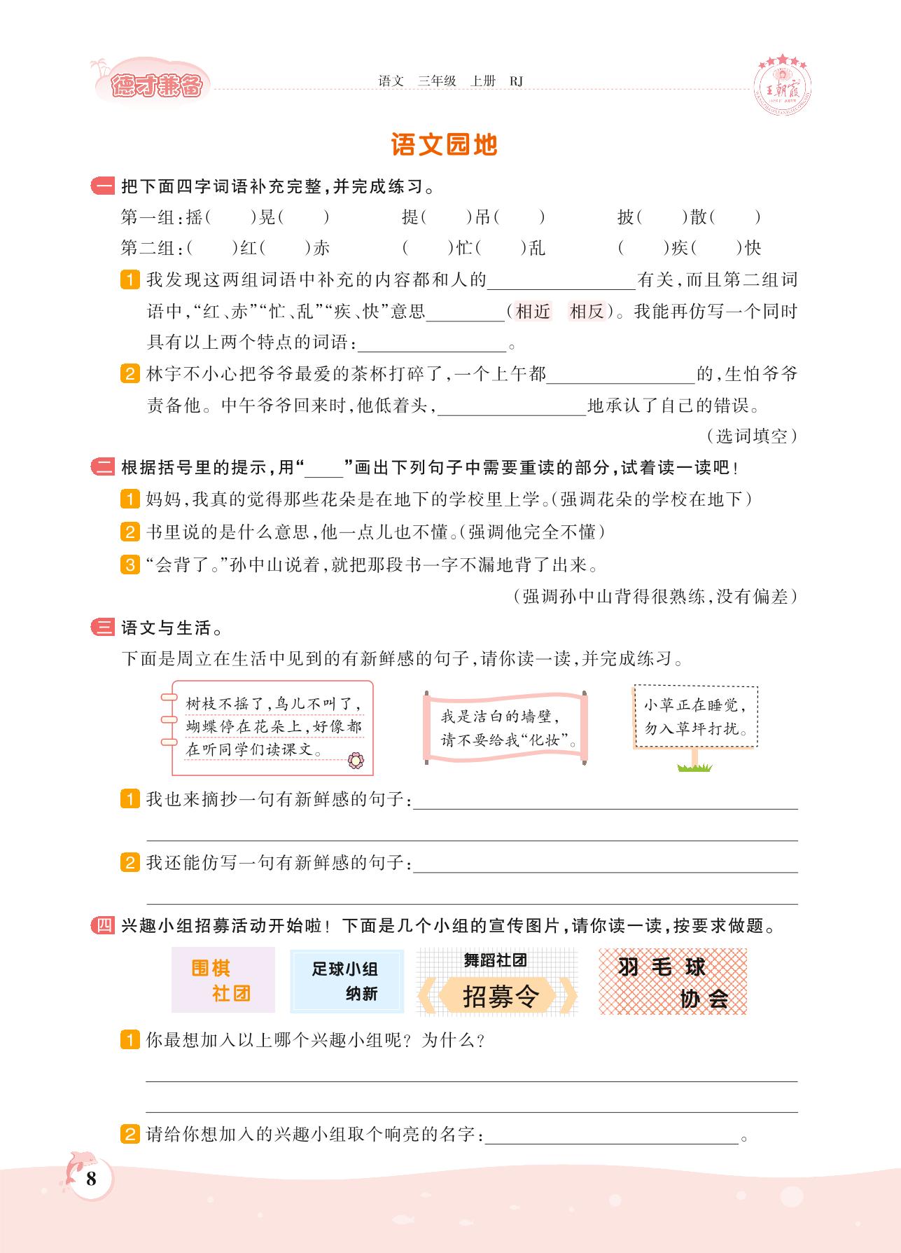 2021上册三年级语文人教版 第一单元——语文园地_R220120114212322