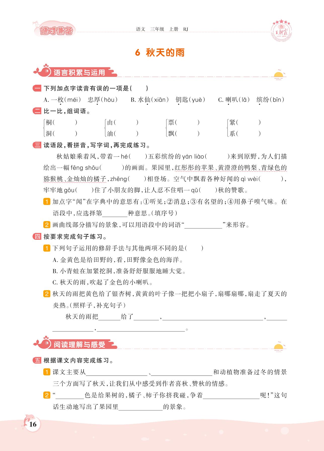 2021上册三年级语文人教版 第二单元——6 秋天的雨