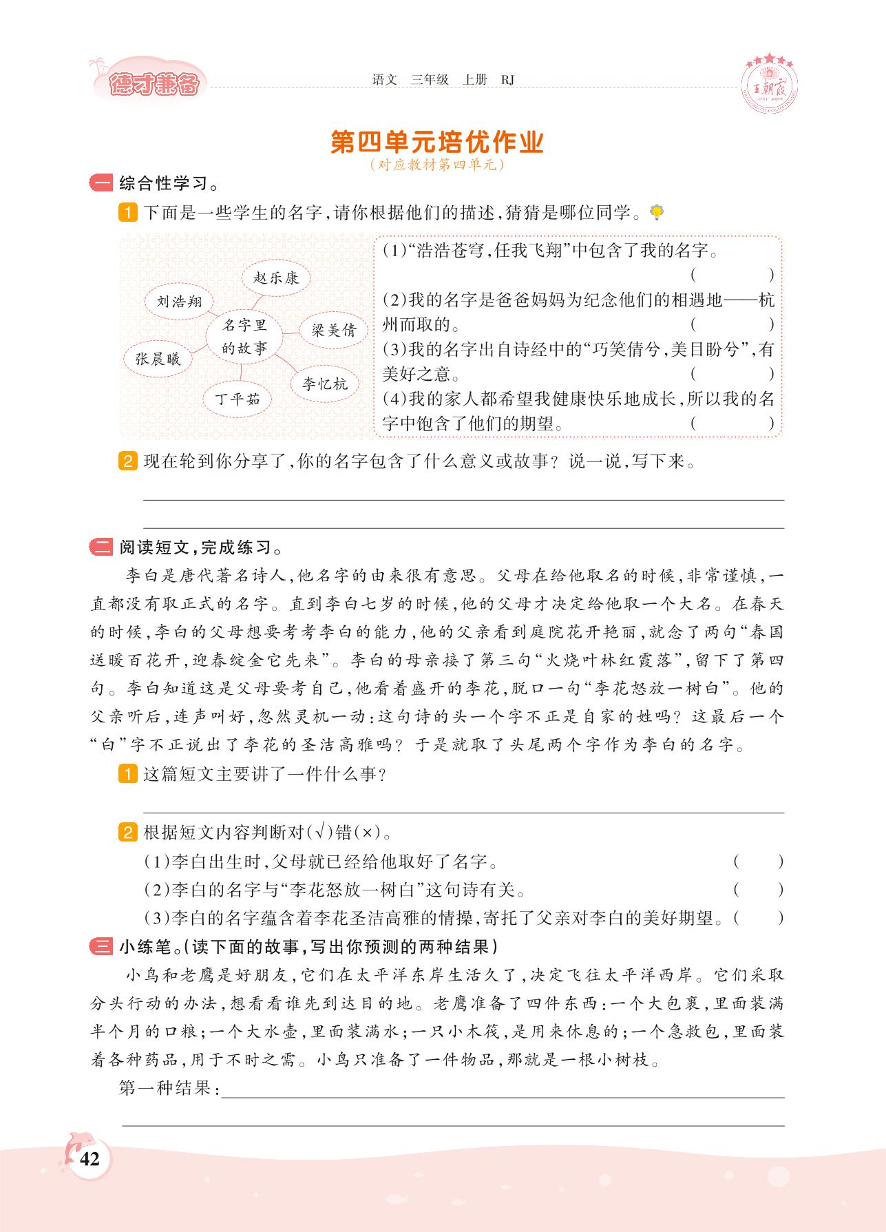2021上册三年级语文人教版 第四单元——第四单元培优作业