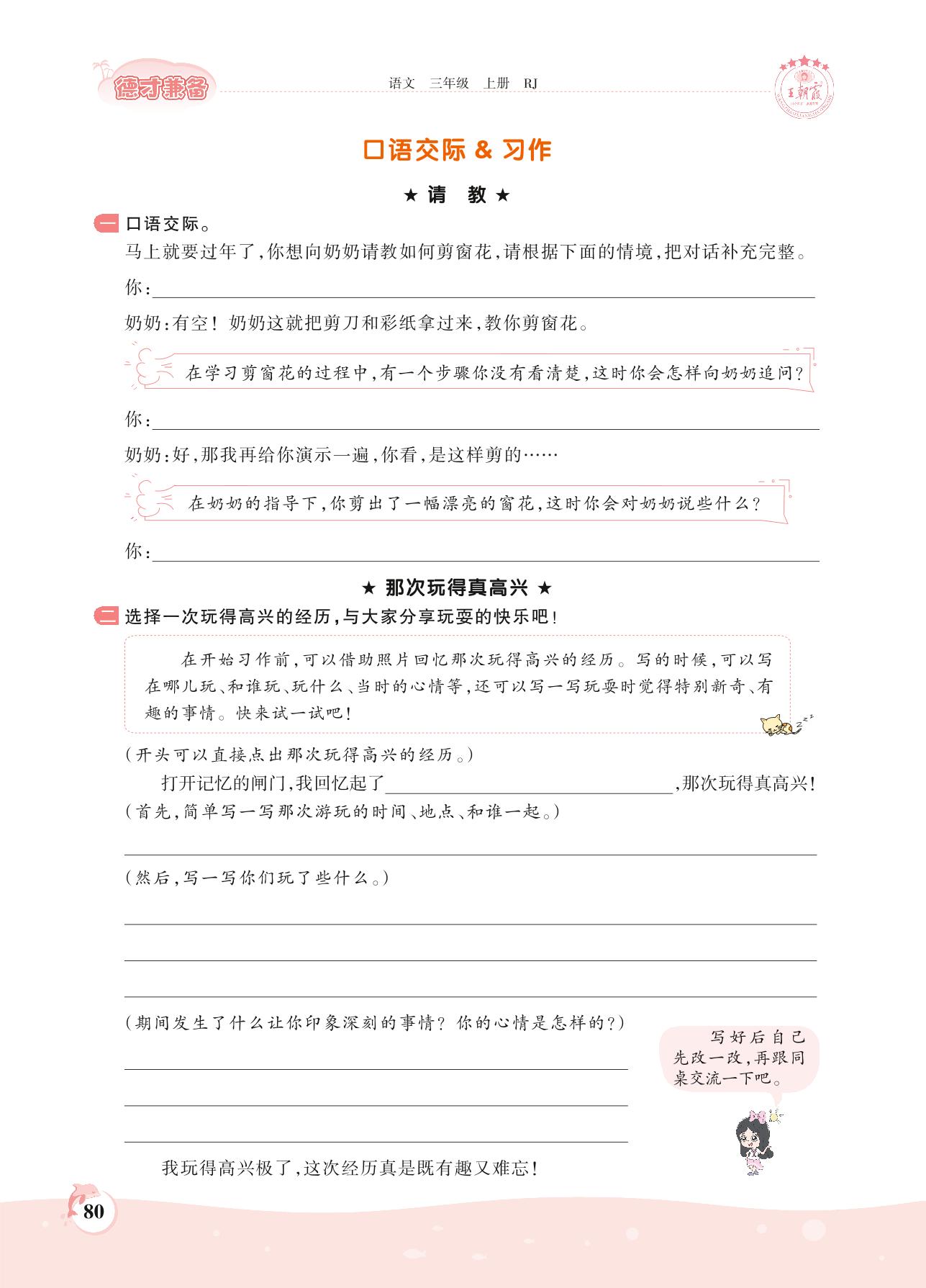 2021上册三年级语文人教版 第八单元——口语交际&习作