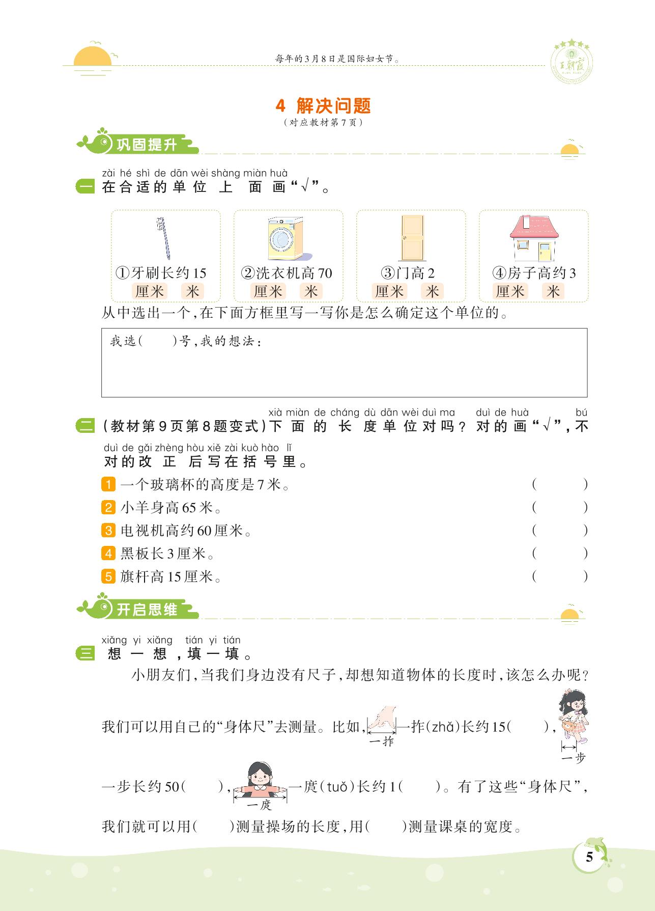 2021上册二年级数学人教版 第一单元 长度单位——4 解决问题