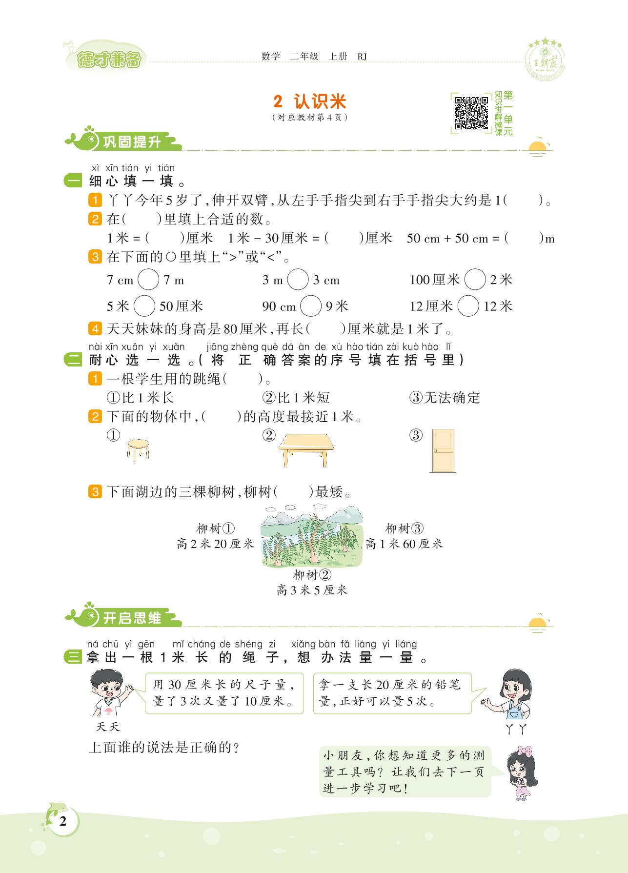 2021上册二年级数学人教版 第一单元 长度单位——2 认识米