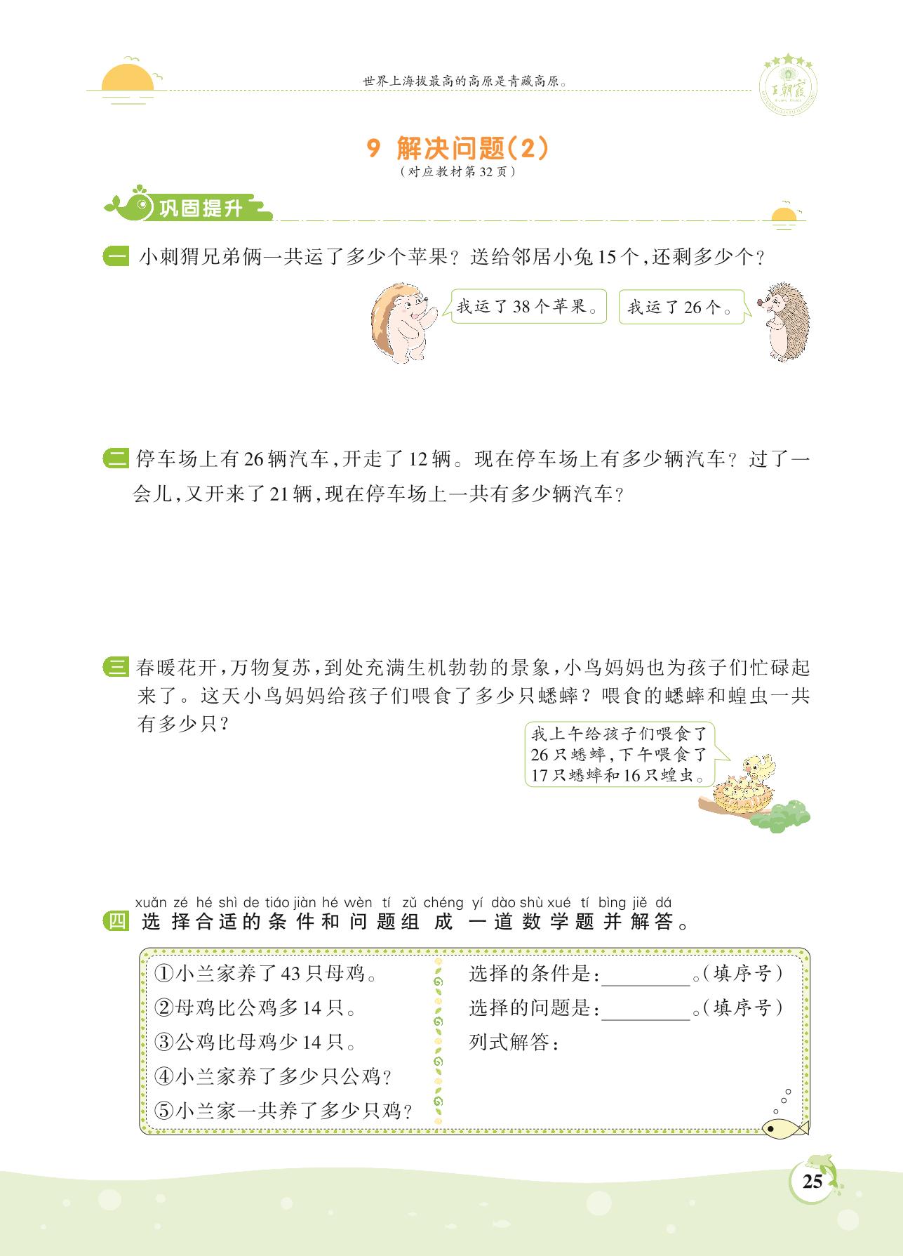 2021上册二年级数学人教版 第二单元 100以内的加法和减法(二)——9 解决问题(2)