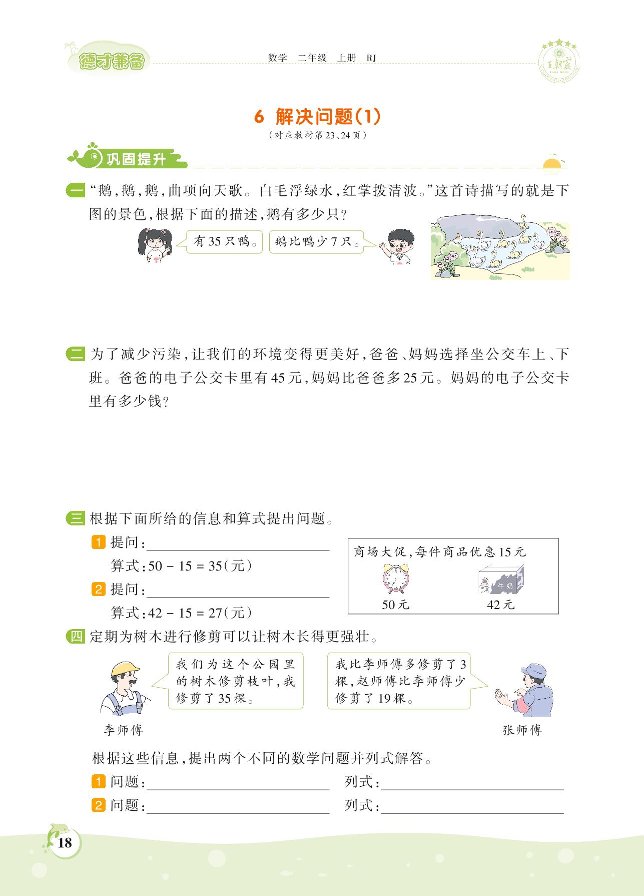 2021上册二年级数学人教版 第二单元 100以内的加法和减法(二)——6 解决问题(1)