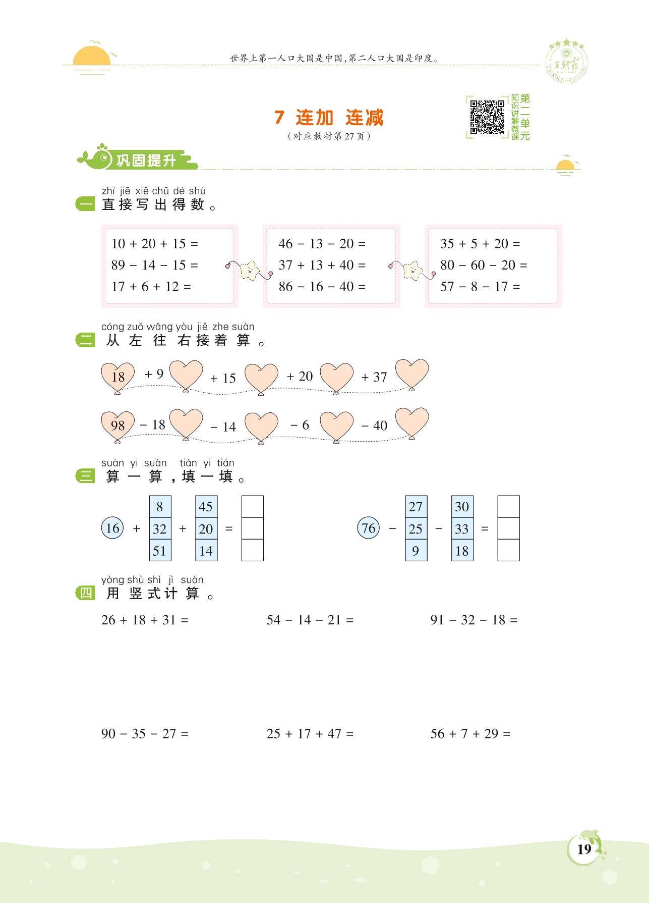 2021上册二年级数学人教版 第二单元 100以内的加法和减法(二)——7 连加 连减