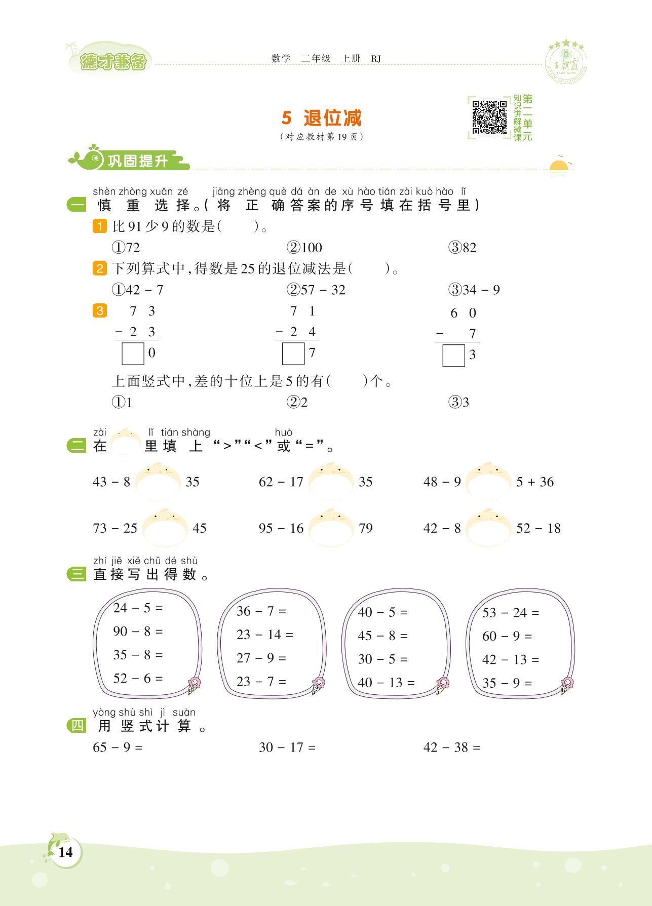 2021上册二年级数学人教版 第二单元 100以内的加法和减法(二)——5 退位减