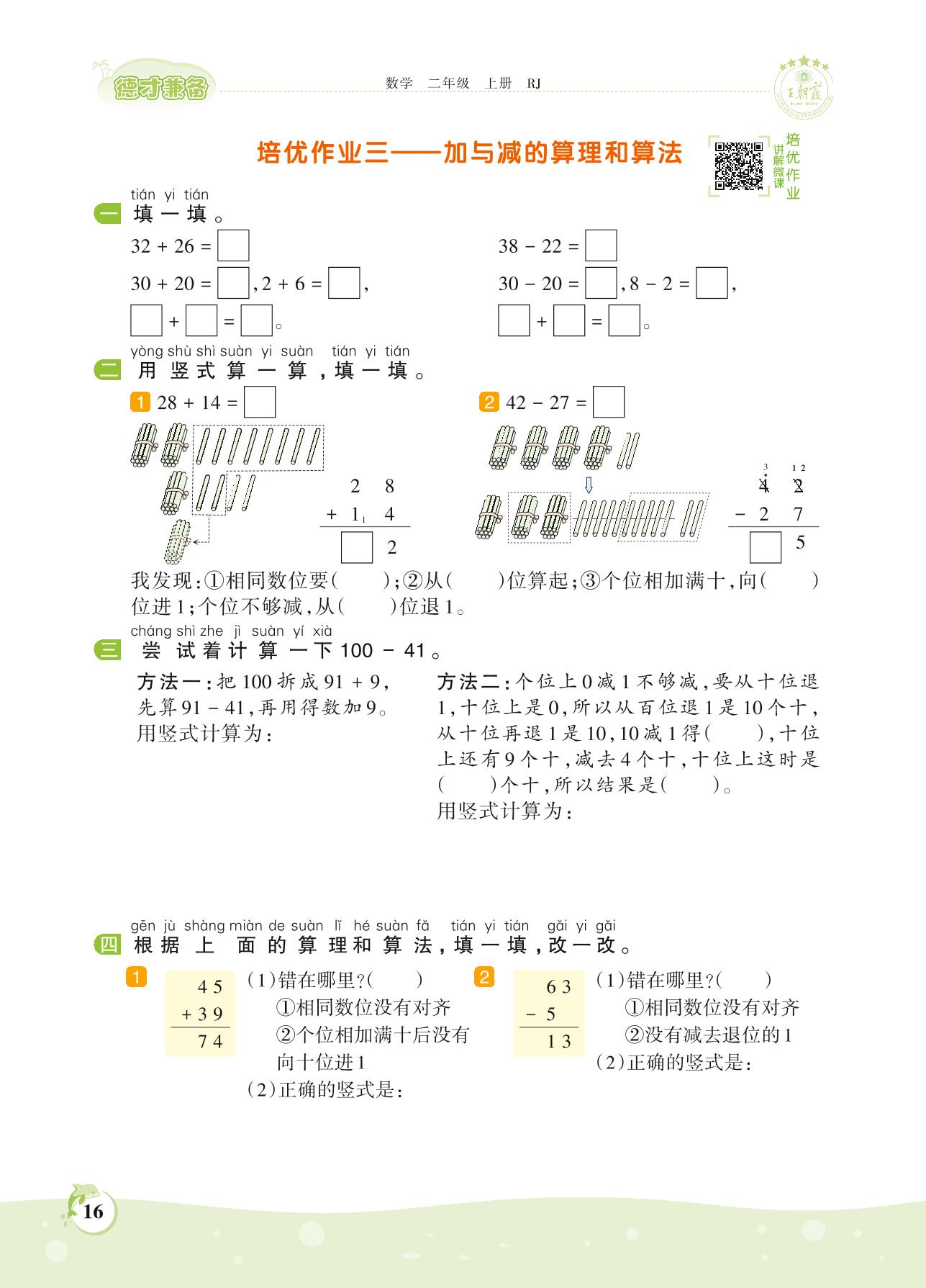 2021上册二年级数学人教版 第二单元 100以内的加法和减法(二)——培优作业三 加与减的算理和算法