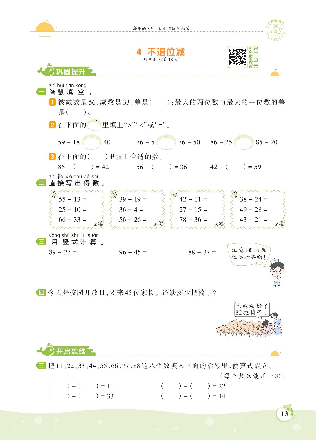 2021上册二年级数学人教版 第二单元 100以内的加法和减法(二)——4 不退位减