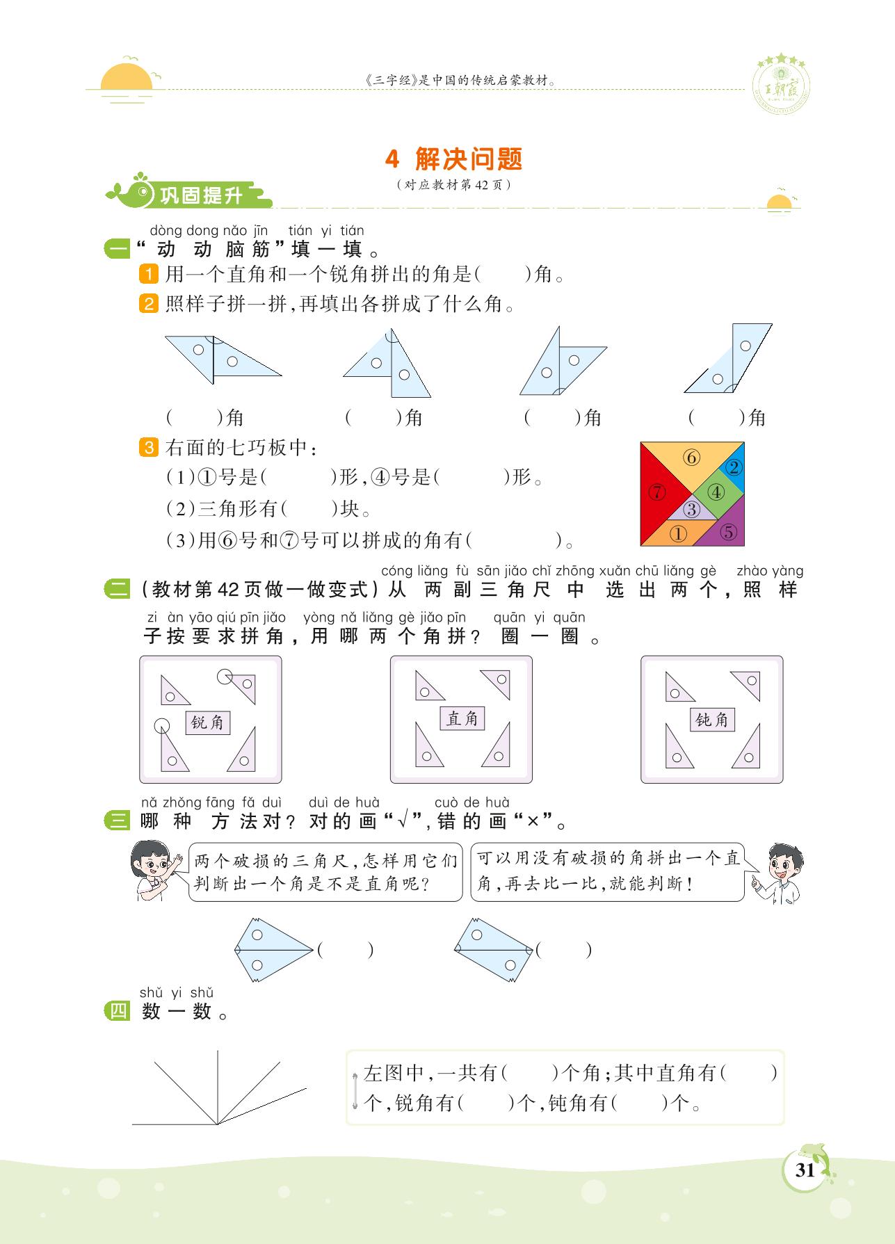 2021上册二年级数学人教版 第三单元 角的初步认识——4 解决问题