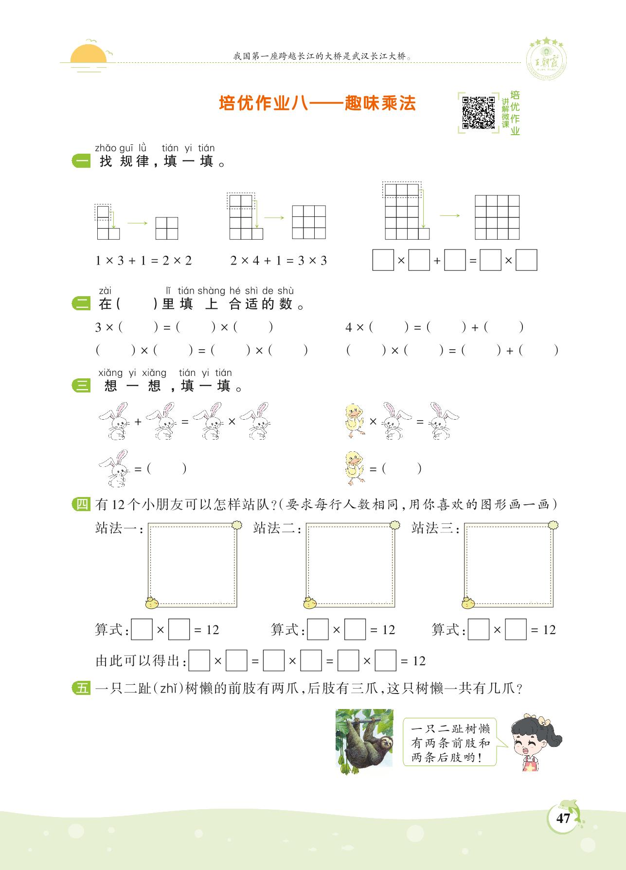 2021上册二年级数学人教版 第四单元 表内乘法(一)——培优作业八 趣味乘法