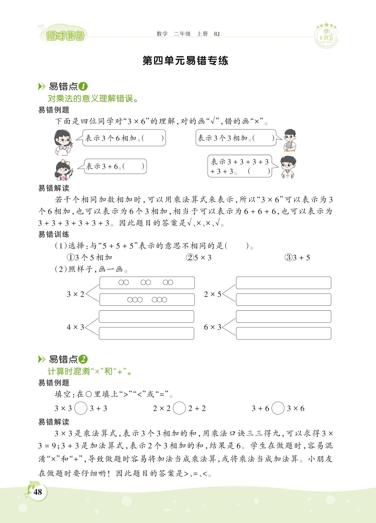 2021上册二年级数学人教版 第四单元 表内乘法(一)——第四单元易错专练