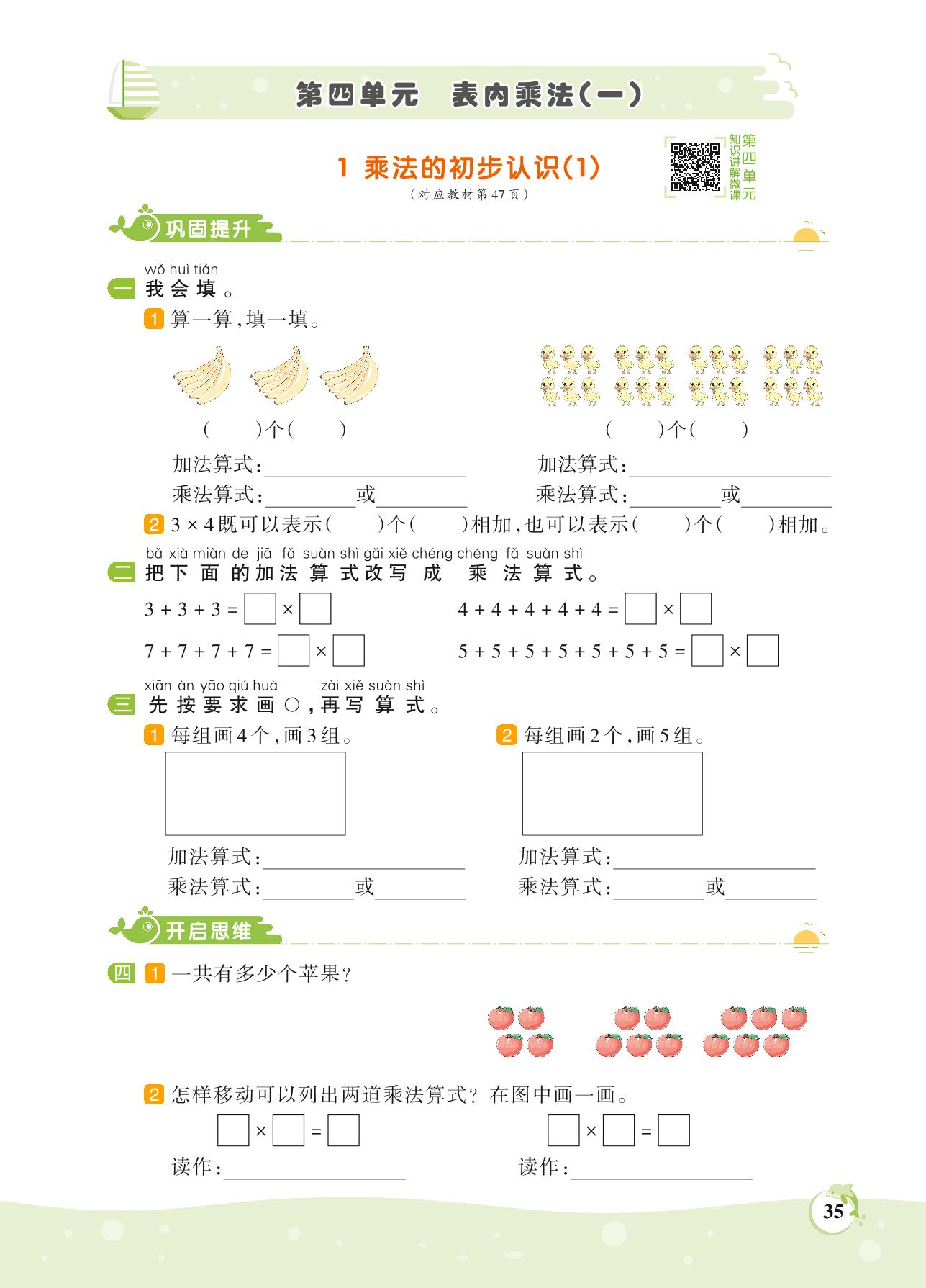 2021上册二年级数学人教版 第四单元 表内乘法(一)——1 乘法的初步认识(1)