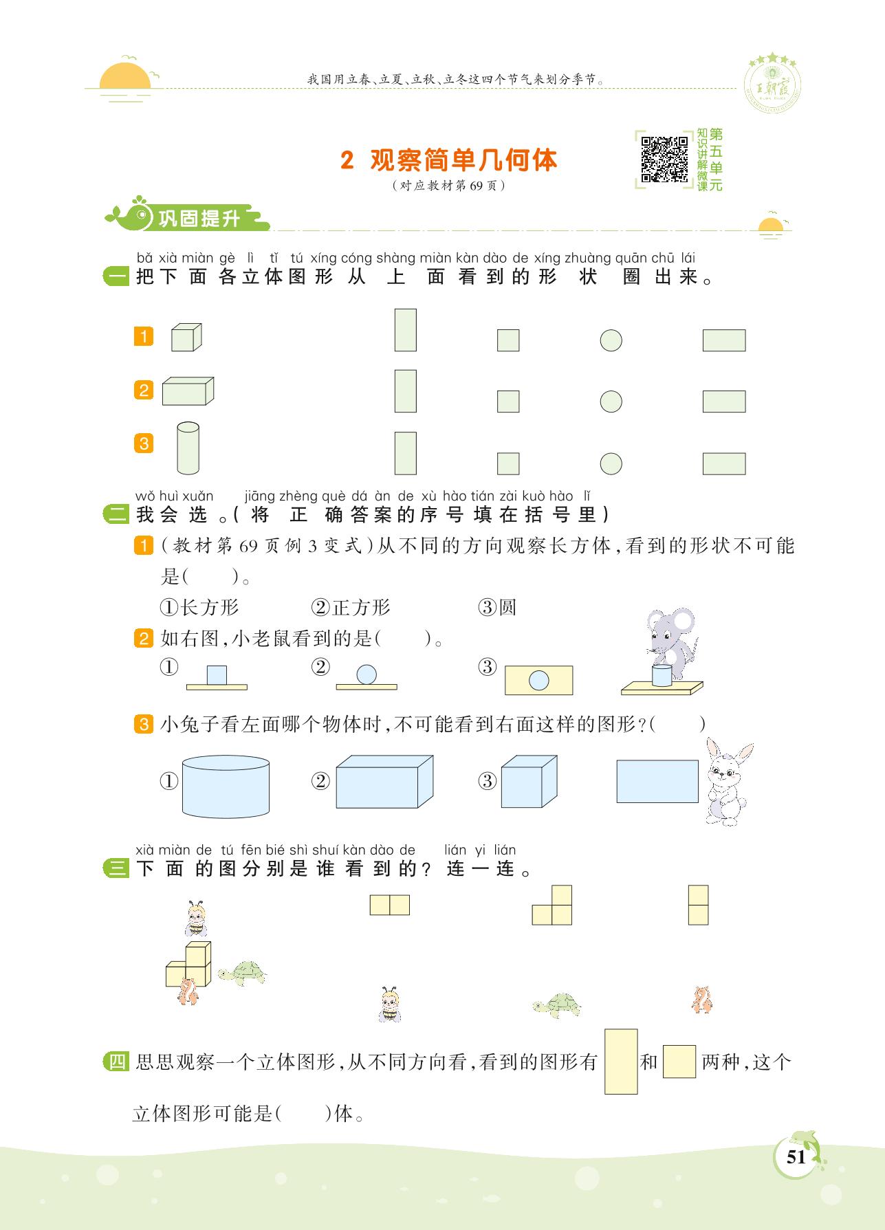 2021上册二年级数学人教版 第五单元 观察物体(一)——2 观察简单几何体