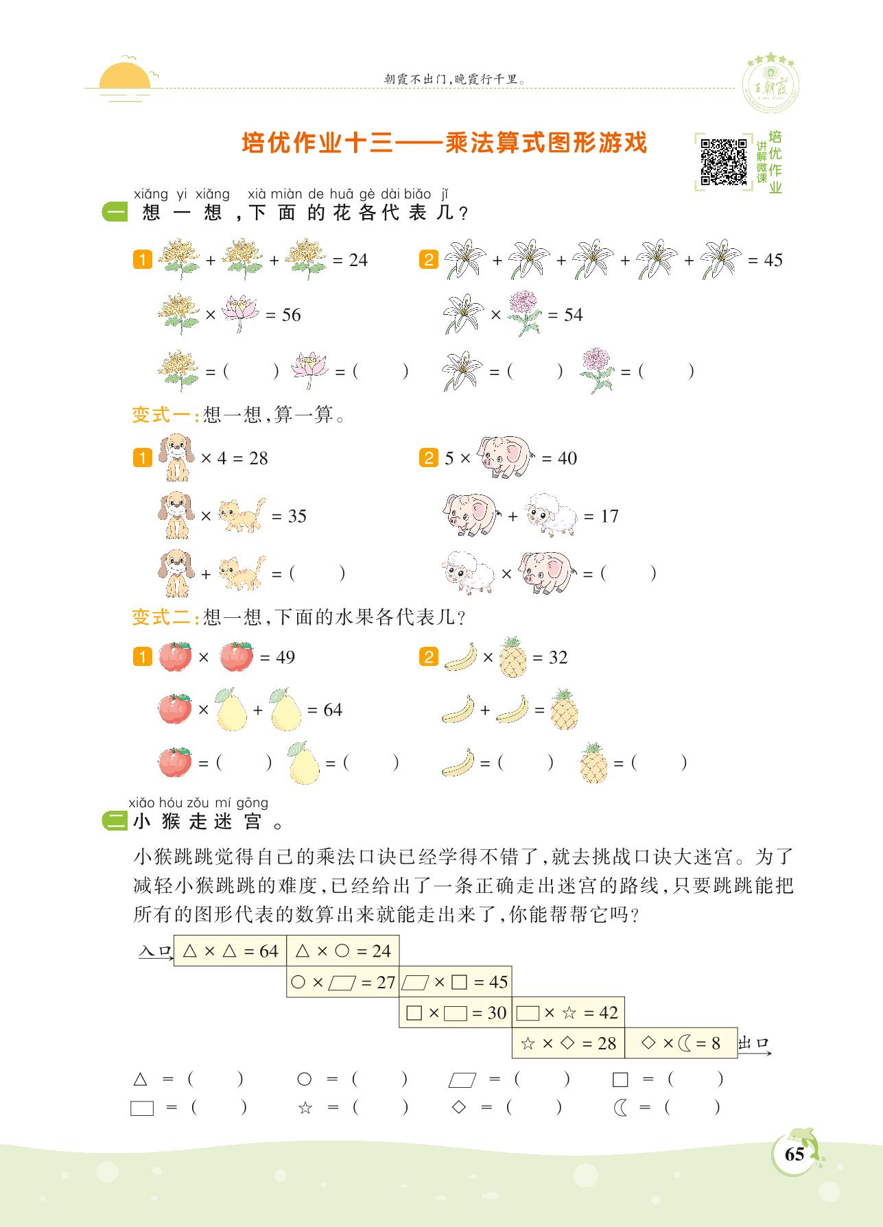 2021上册二年级数学人教版 第六单元 表内乘法(二)——培优作业十三 乘法算式图形游戏