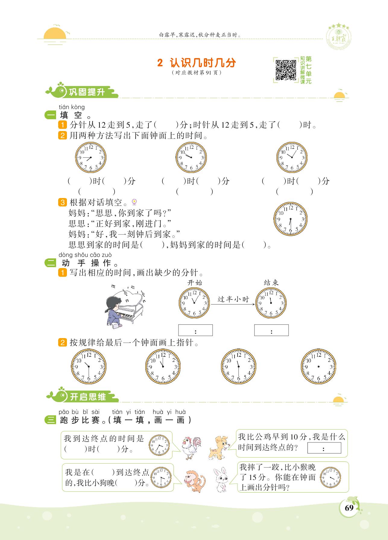 2021上册二年级数学人教版 第七单元 认识时间——2 认识几时几分