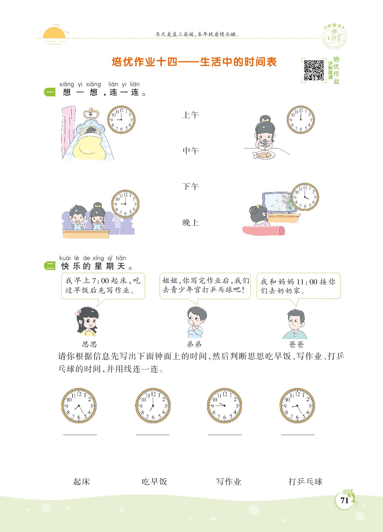 2021上册二年级数学人教版 第七单元 认识时间——培优作业十四 生活中的时间表