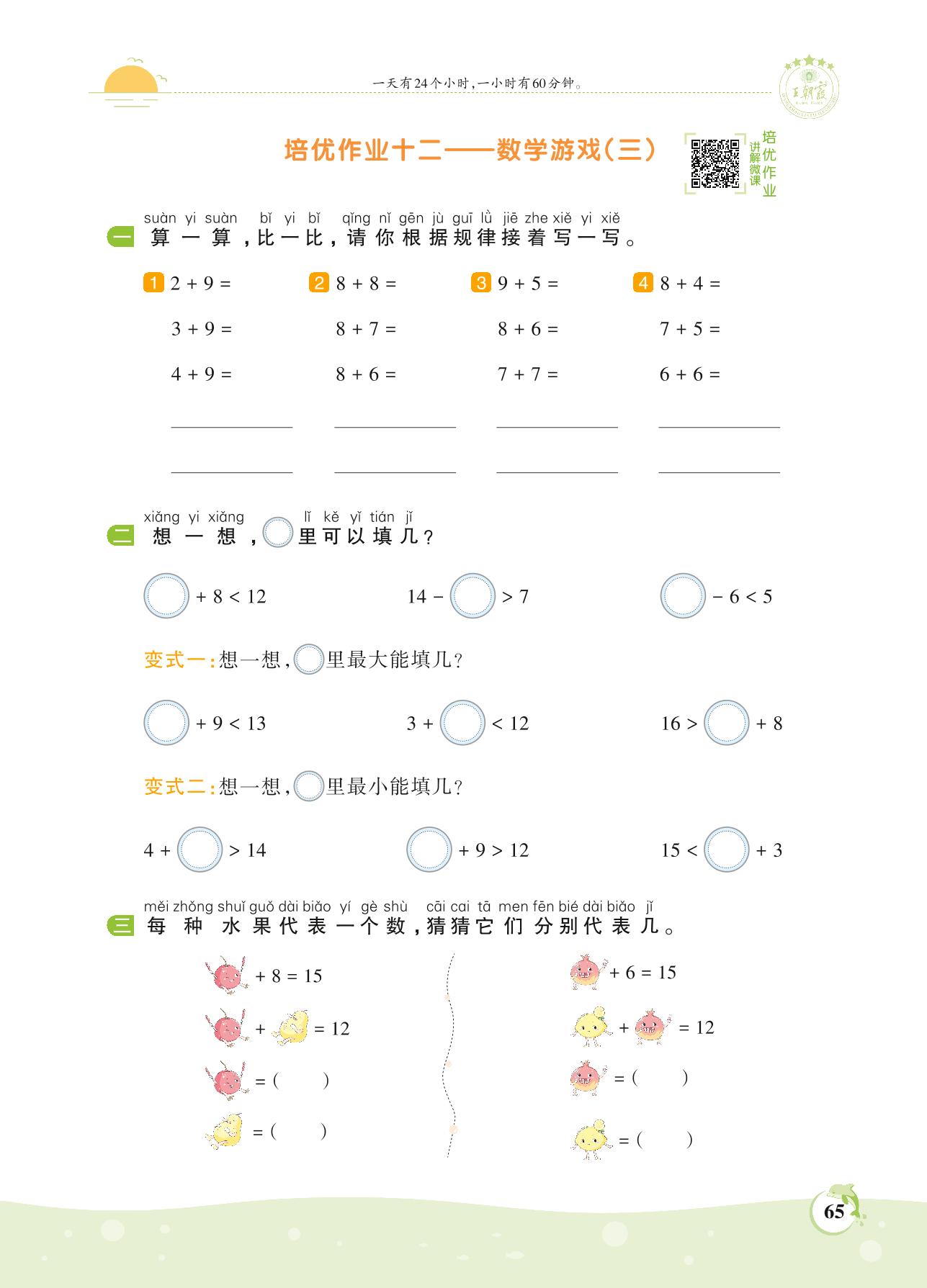 2021上册一年级数学北师版 第七单元 加与减(二)——培优作业十二 数学游戏(三)