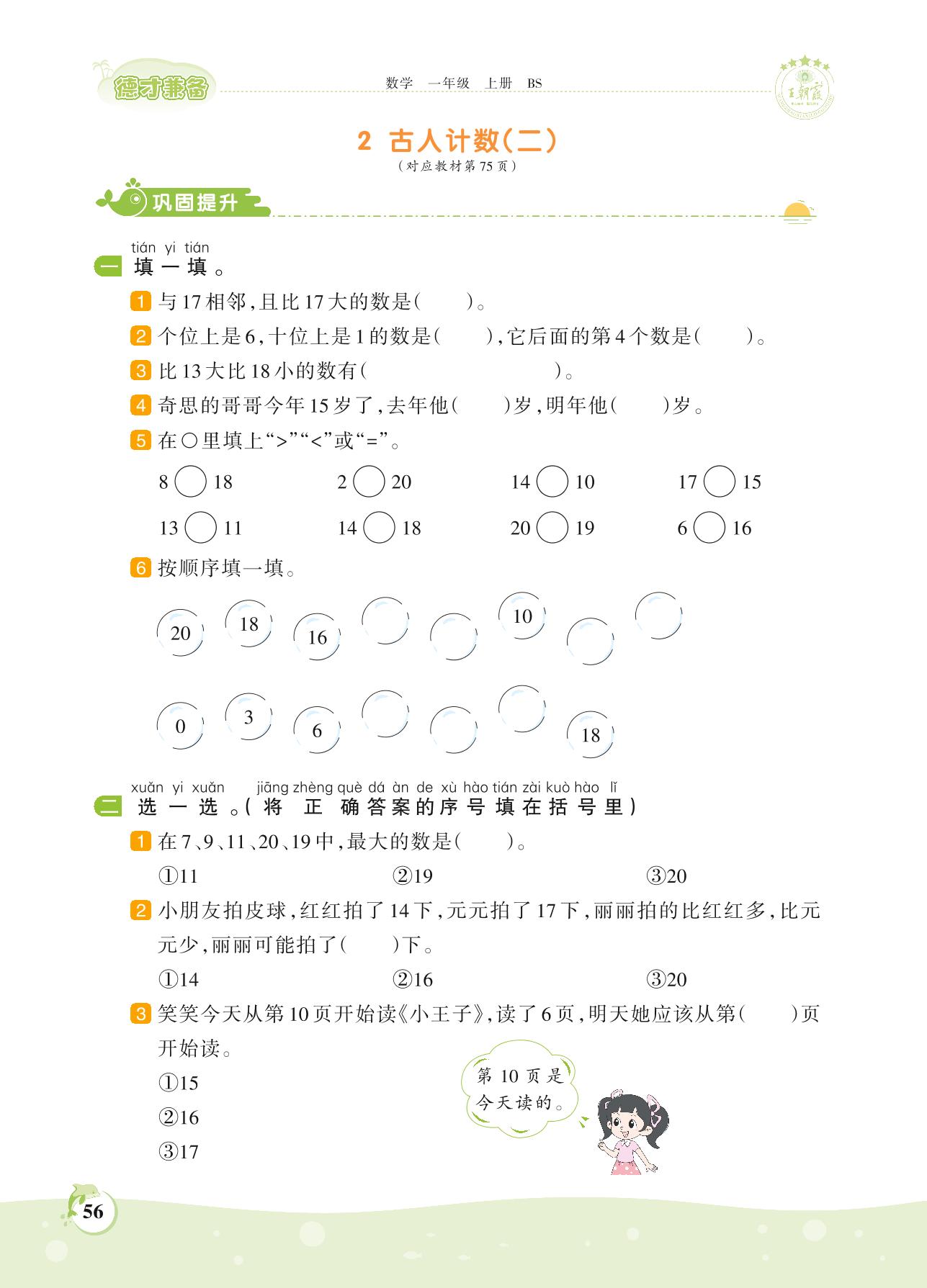一年级数学北师版上册课时作业