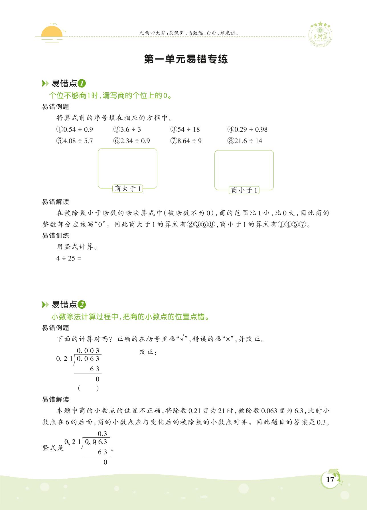 2021上册五年级数学北师版 第一单元 小数除法——第一单元易错专练
