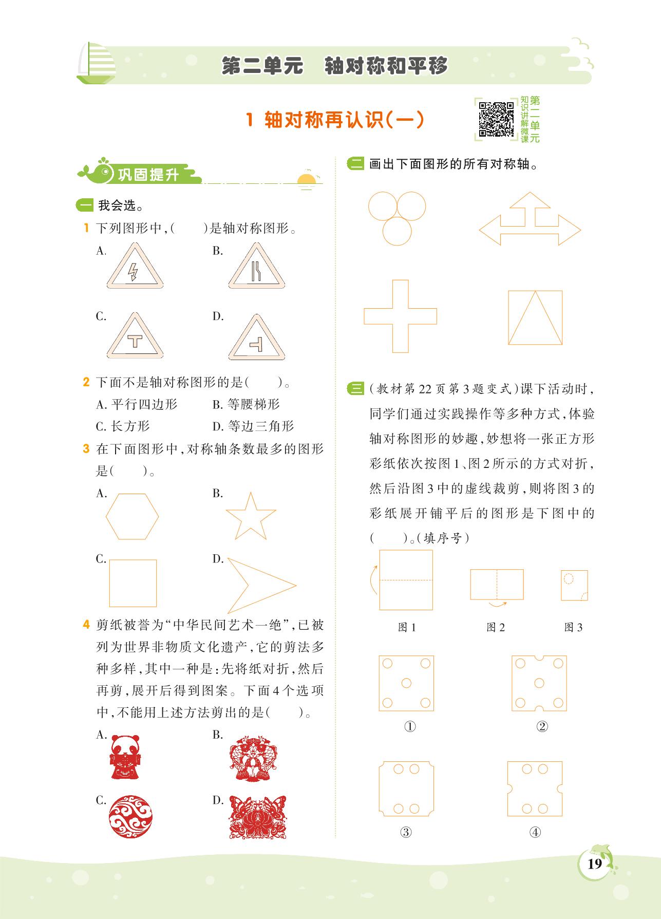 2021上册五年级数学北师版 第二单元 轴对称和平移——1 轴对称再认识(一)