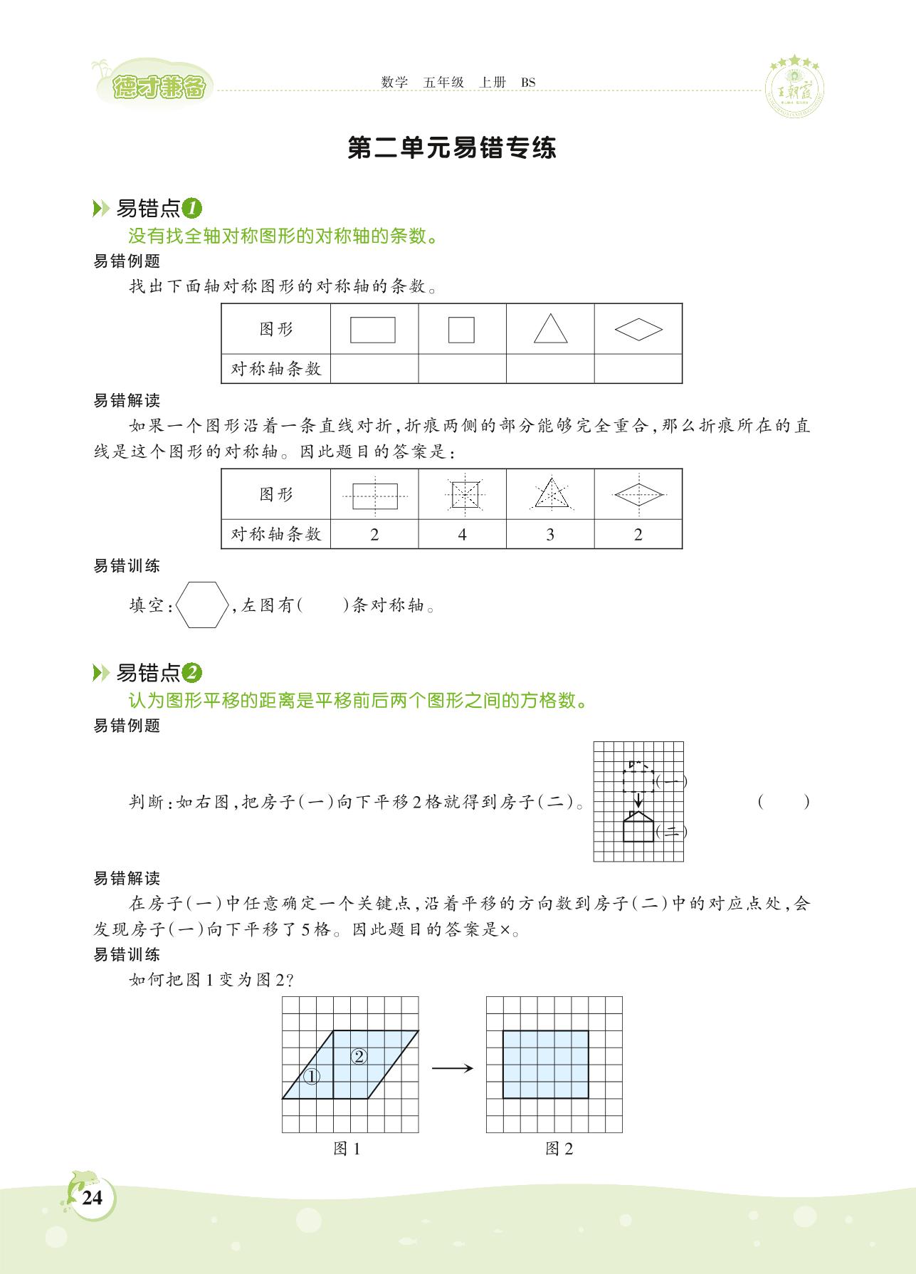 2021上册五年级数学北师版 第二单元 轴对称和平移——第二单元易错专练