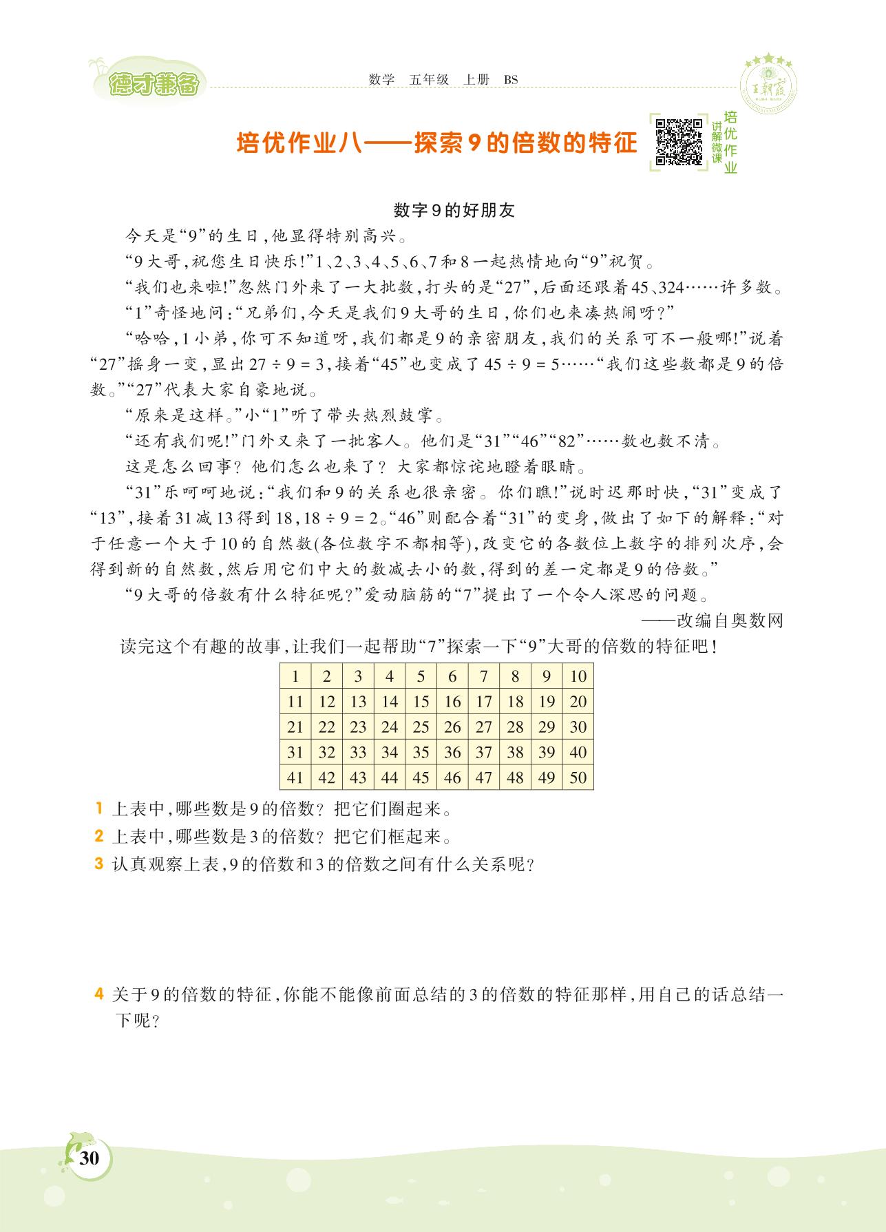 2021上册五年级数学北师版 第三单元 倍数与因数——培优作业八 探索9的倍数的特征
