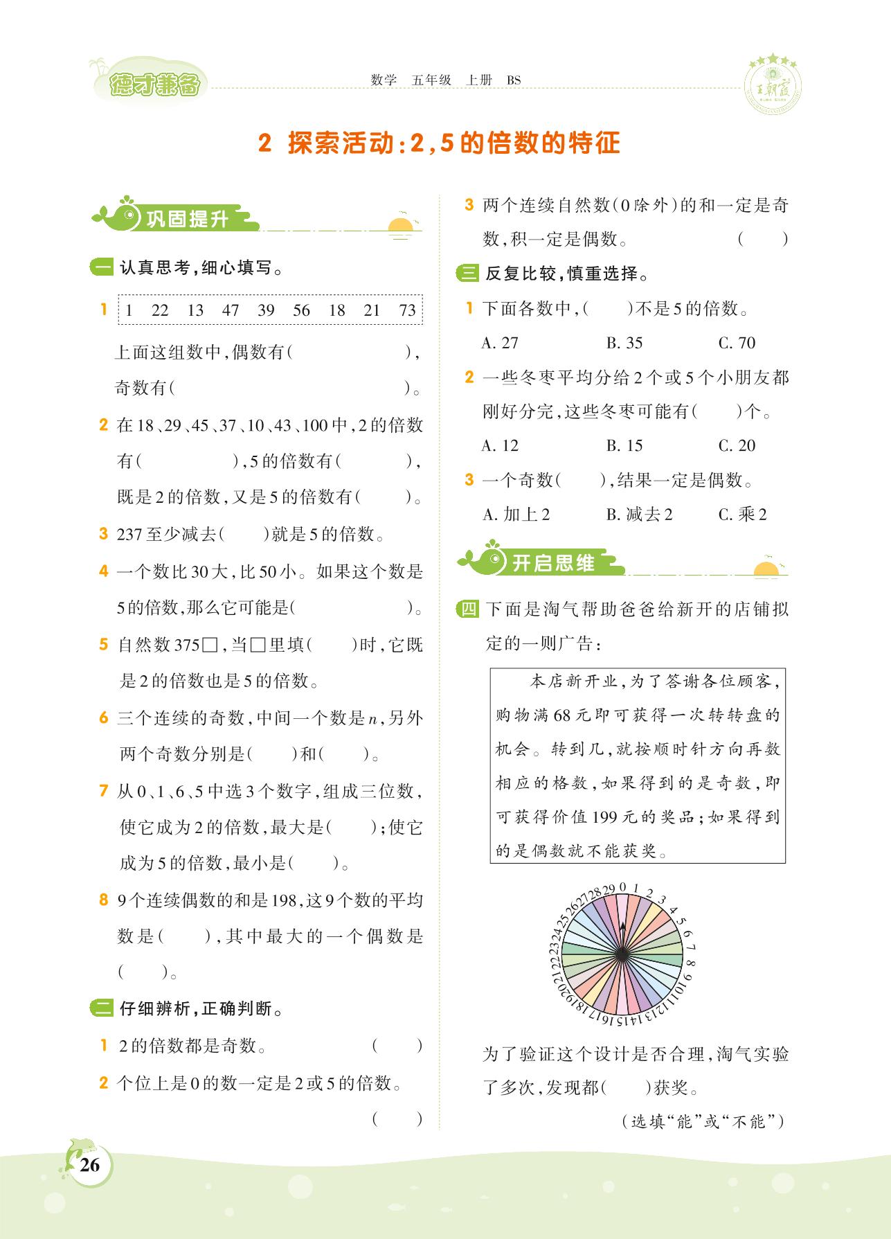 2021上册五年级数学北师版 第三单元 倍数与因数——2 探索活动:2,5的倍数的特征