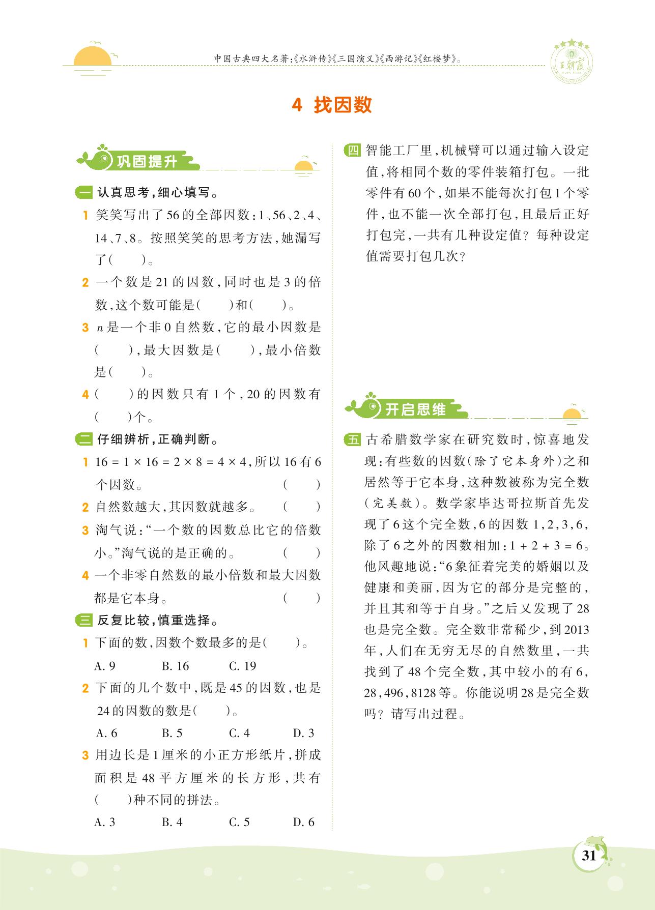 2021上册五年级数学北师版 第三单元 倍数与因数——4 找因数