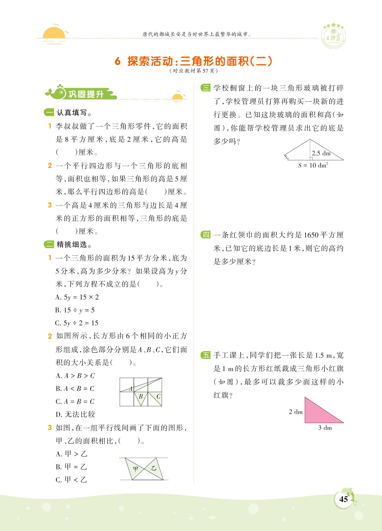2021上册五年级数学北师版 第四单元 多边形的面积——6 探索活动:三角形的面积(二)