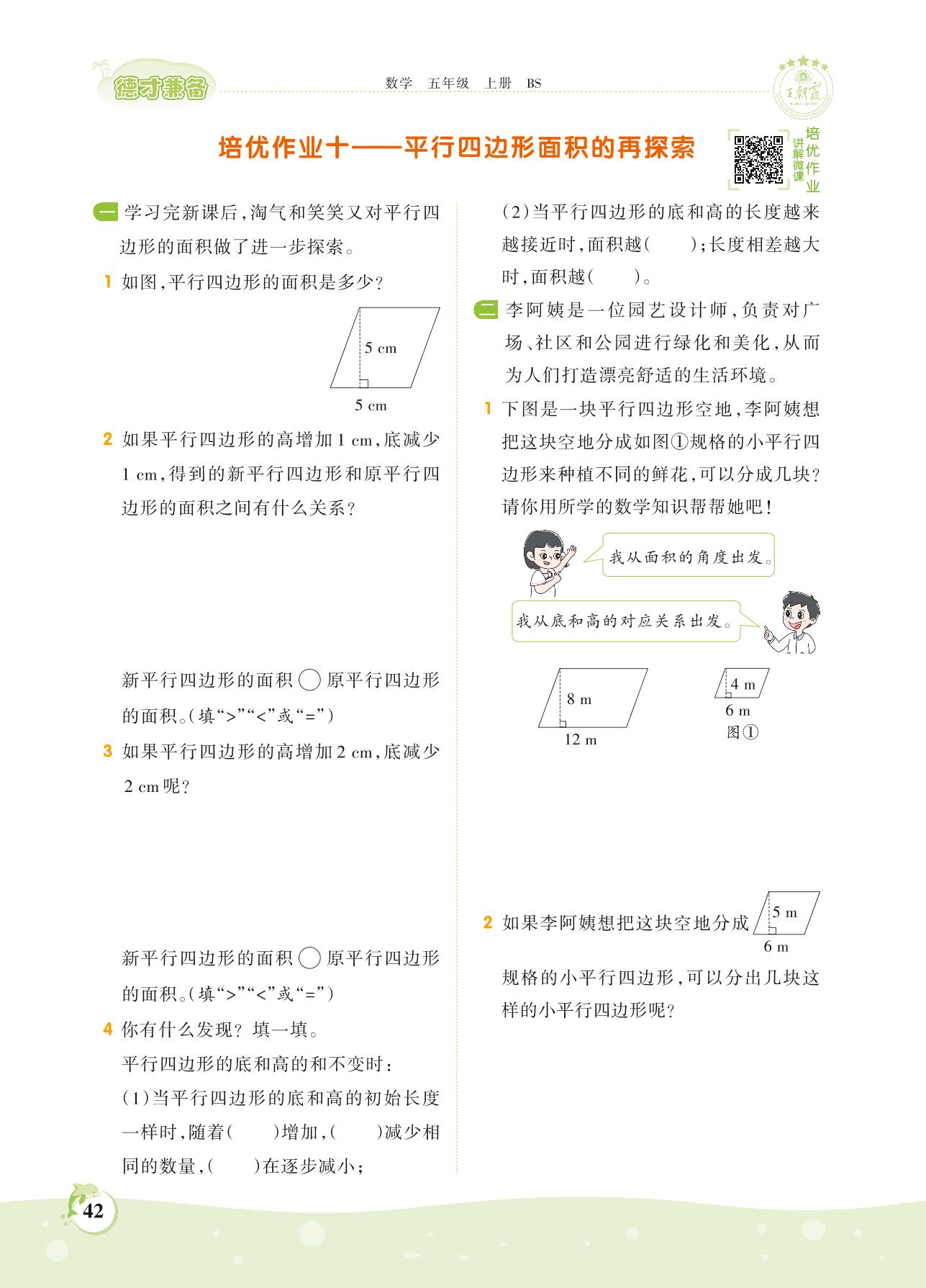 2021上册五年级数学北师版 第四单元 多边形的面积——培优作业十 平行四边形面积的再探索