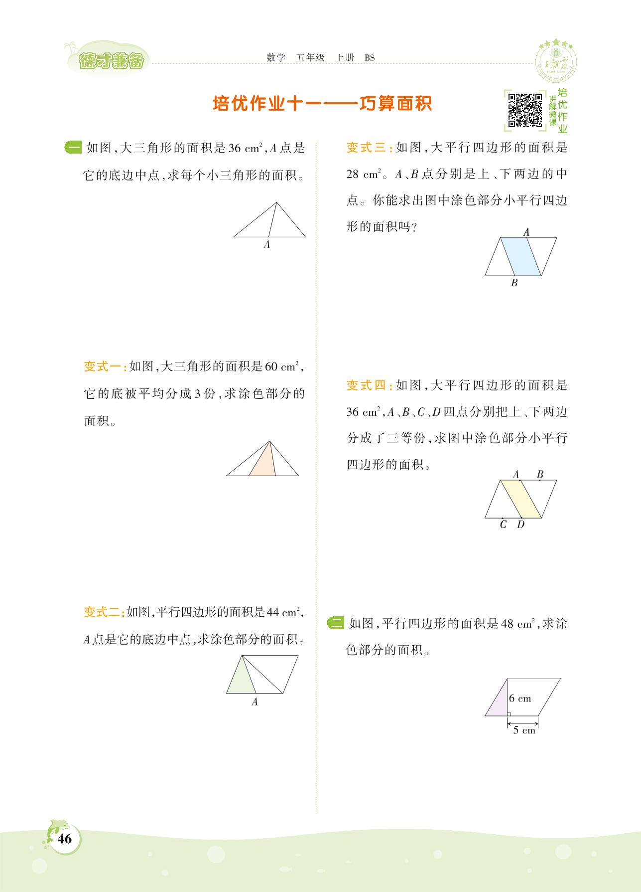 2021上册五年级数学北师版 第四单元 多边形的面积——培优作业十一 巧算面积