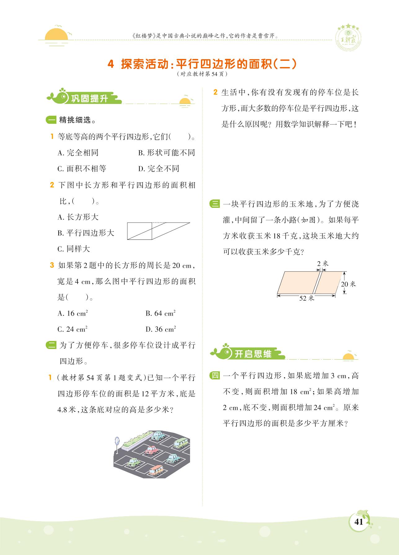 2021上册五年级数学北师版 第四单元 多边形的面积——4 探索活动:平行四边形的面积(二)