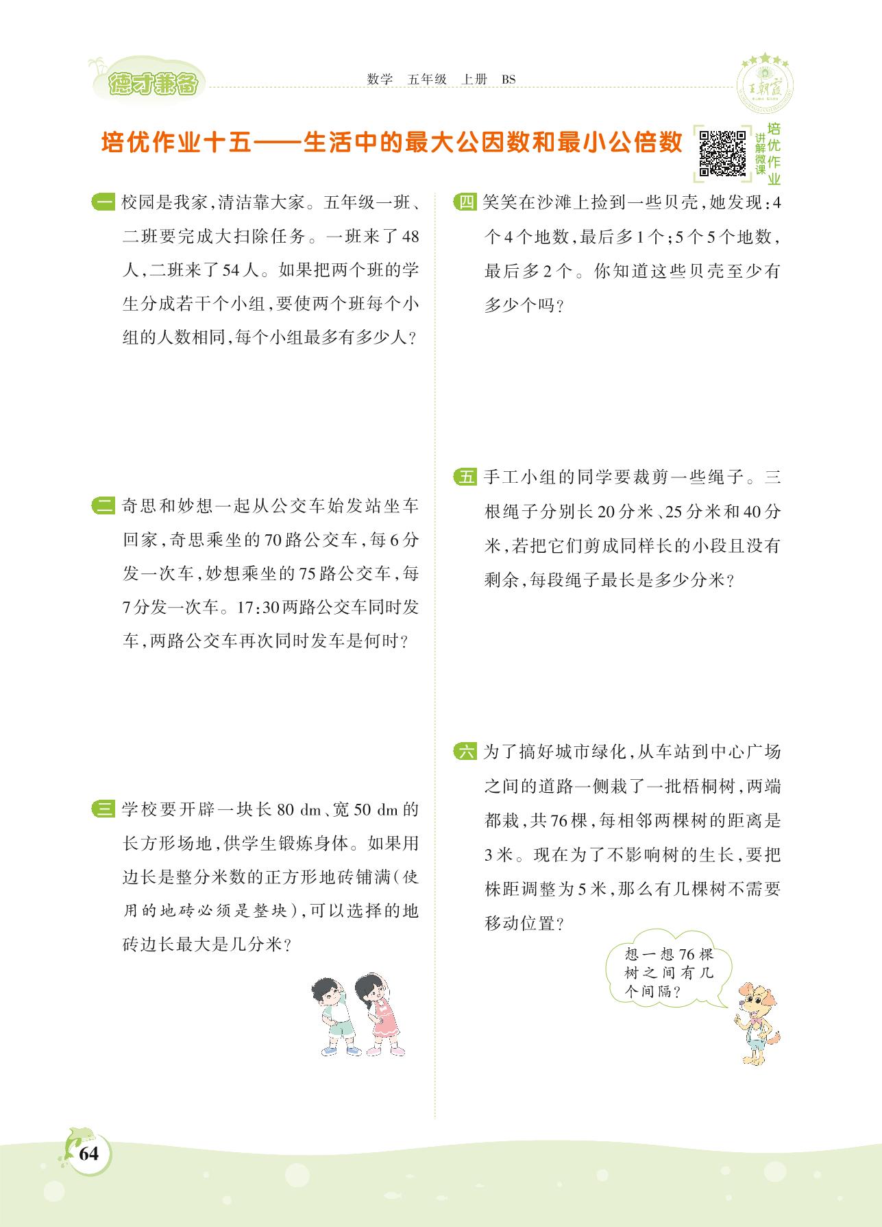2021上册五年级数学北师版 第五单元 分数的意义——培优作业十五 生活中的最大公因数和最小公倍数