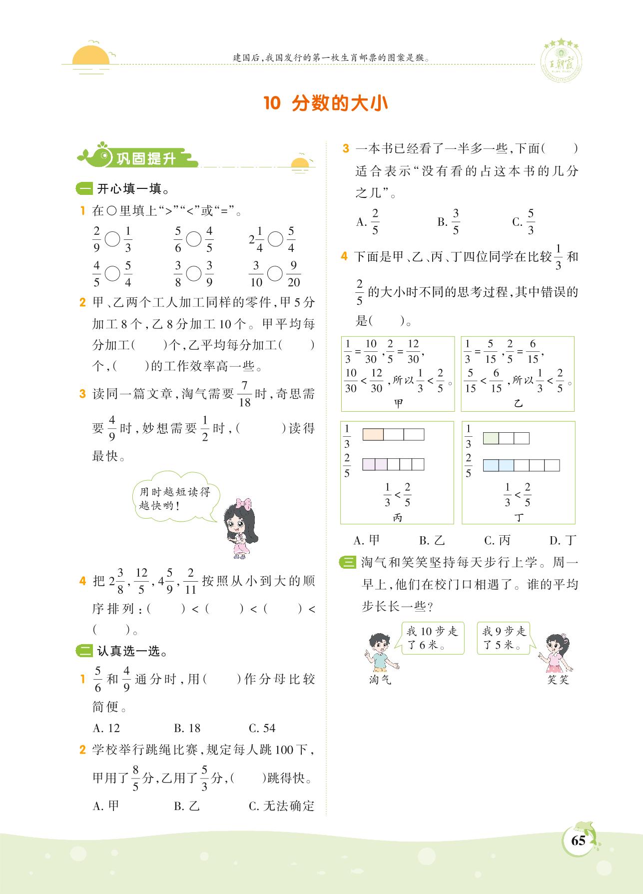 2021上册五年级数学北师版 第五单元 分数的意义——10 分数的大小