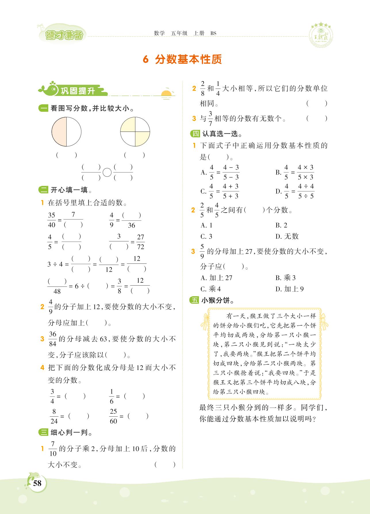 2021上册五年级数学北师版 第五单元 分数的意义——6 分数基本性质