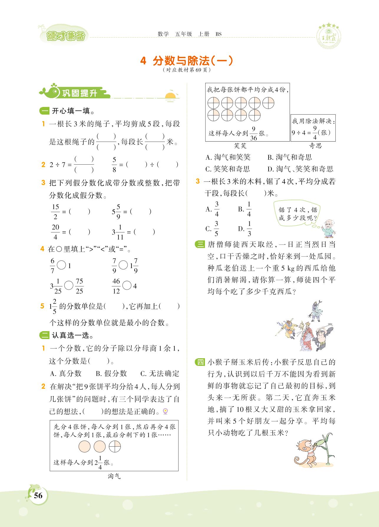 2021上册五年级数学北师版 第五单元 分数的意义——4 分数与除法(一)