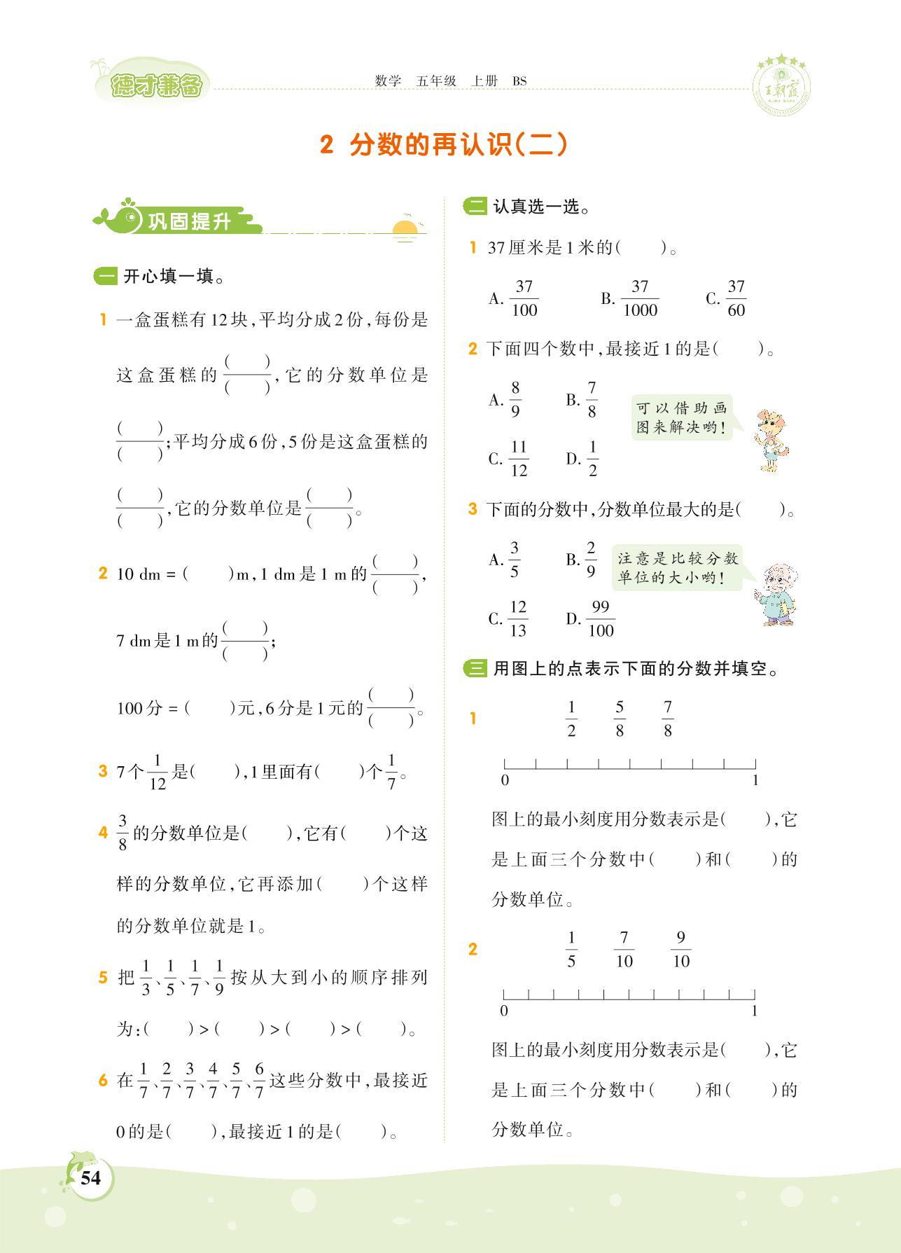2021上册五年级数学北师版 第五单元 分数的意义——2 分数的再认识(二)