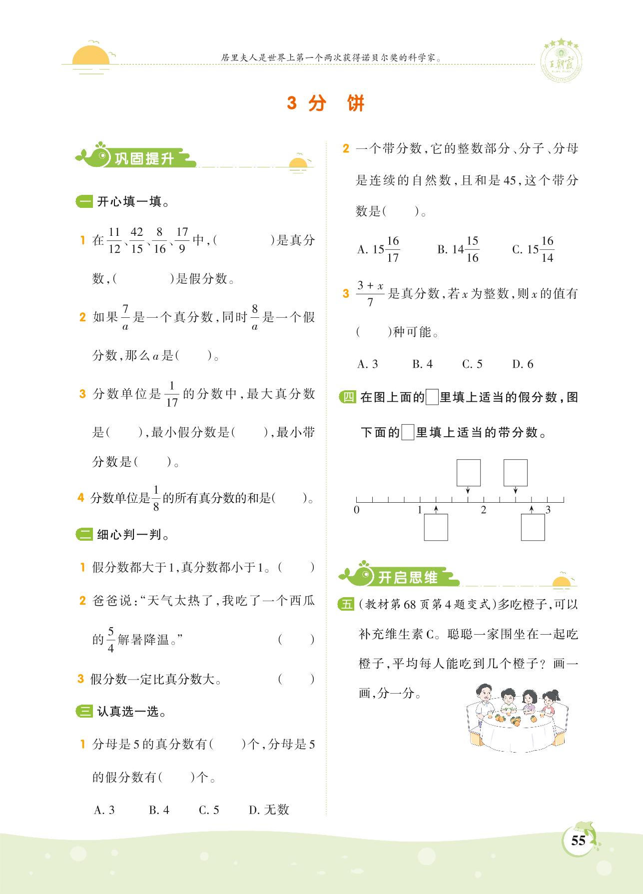 2021上册五年级数学北师版 第五单元 分数的意义——3 分饼
