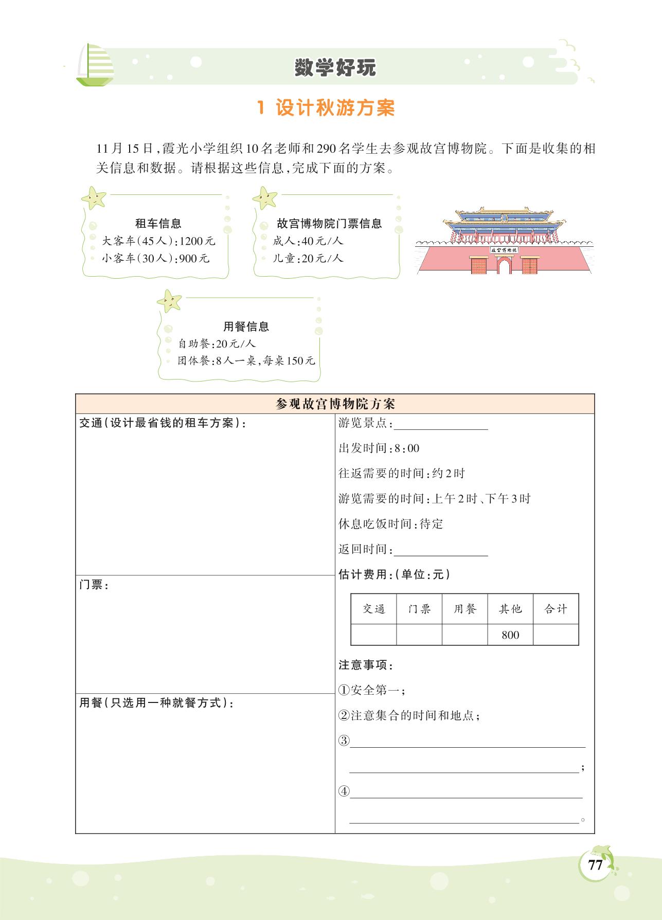 2021上册五年级数学北师版 第六单元 数学好玩——1 设计秋游方案