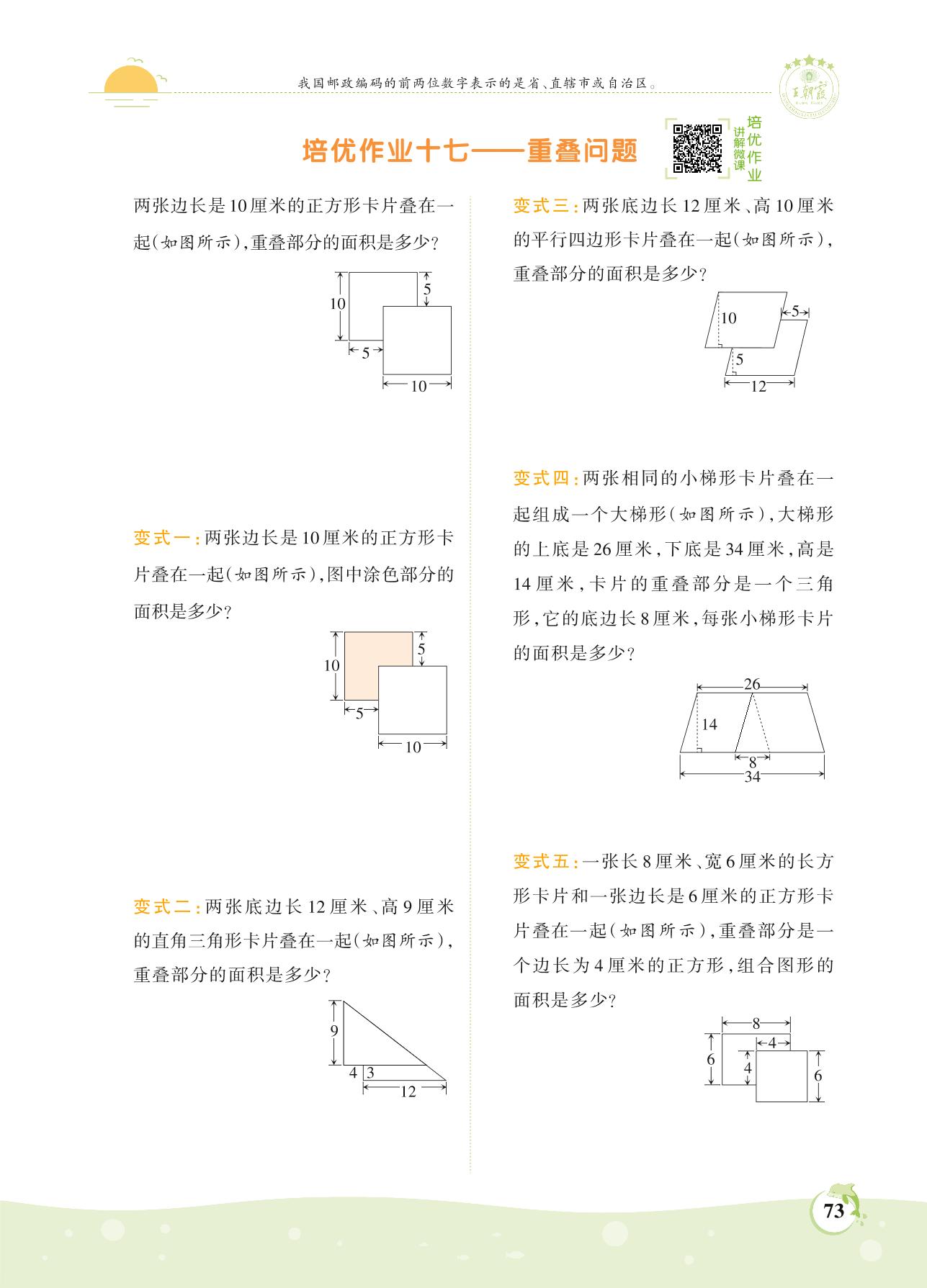 2021上册五年级数学北师版 第六单元 组合图形的面积——培优作业十七 重叠问题