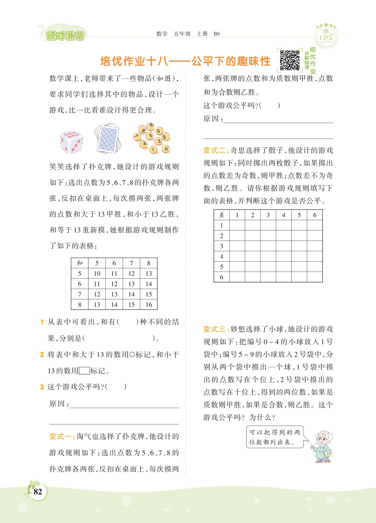 2021上册五年级数学北师版 第七单元 可能性——培优作业十八 公平下的趣味性