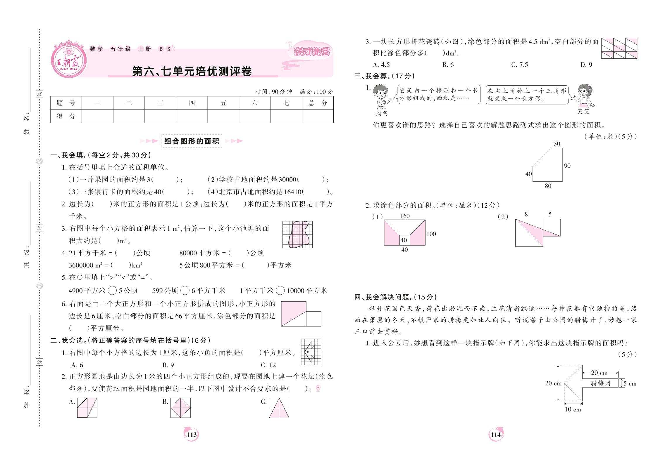 2021上册五年级数学北师版 第六、七单元培优测评卷