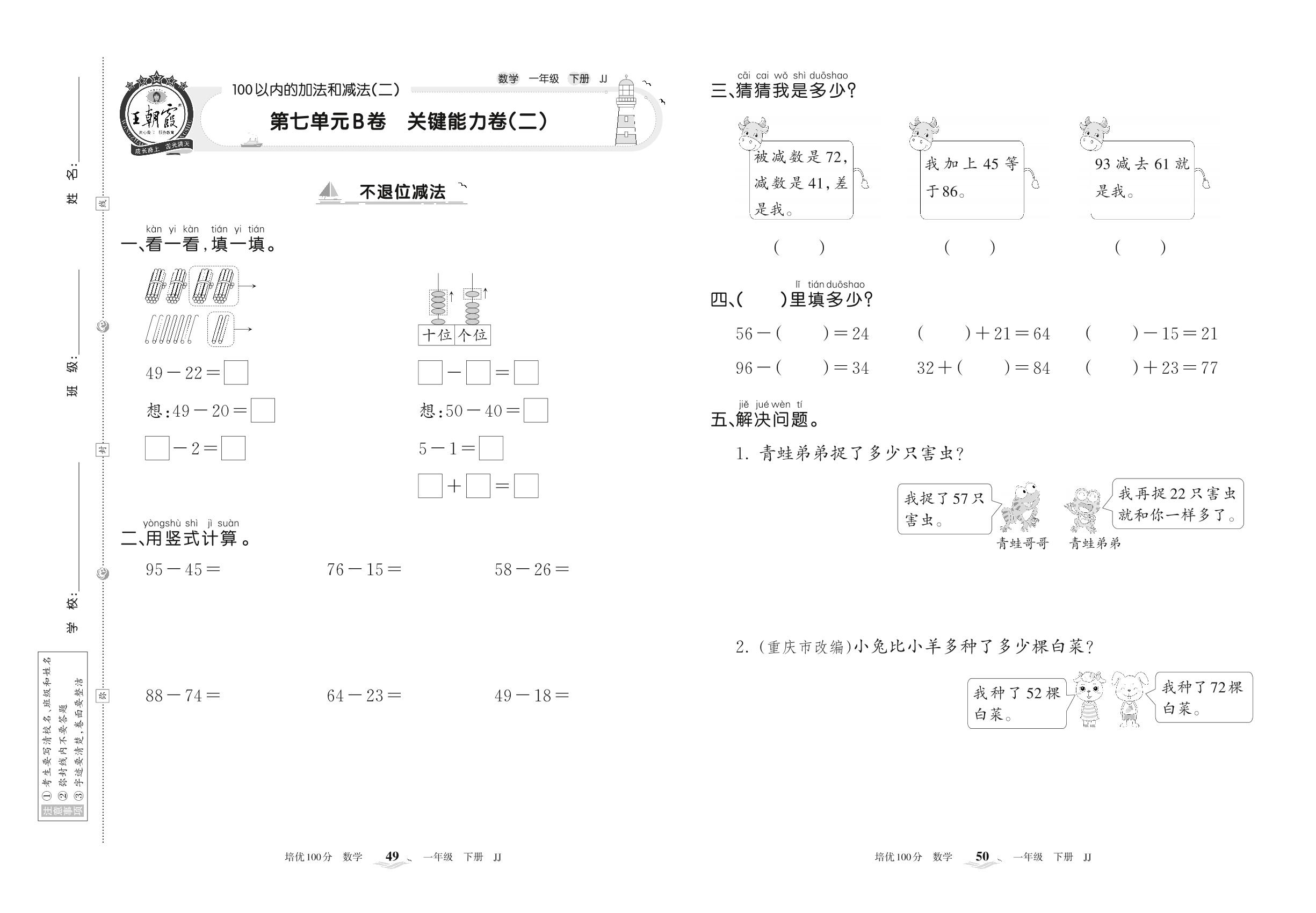 2022下册一年级数学冀教版 第七单元 关键能力卷(二)