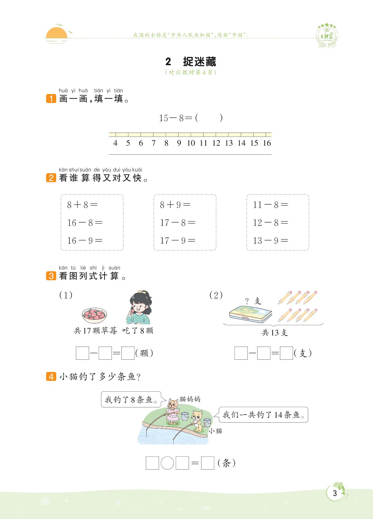 2022下册一年级数学北师版 第一单元 加与减(一)——2 捉迷藏