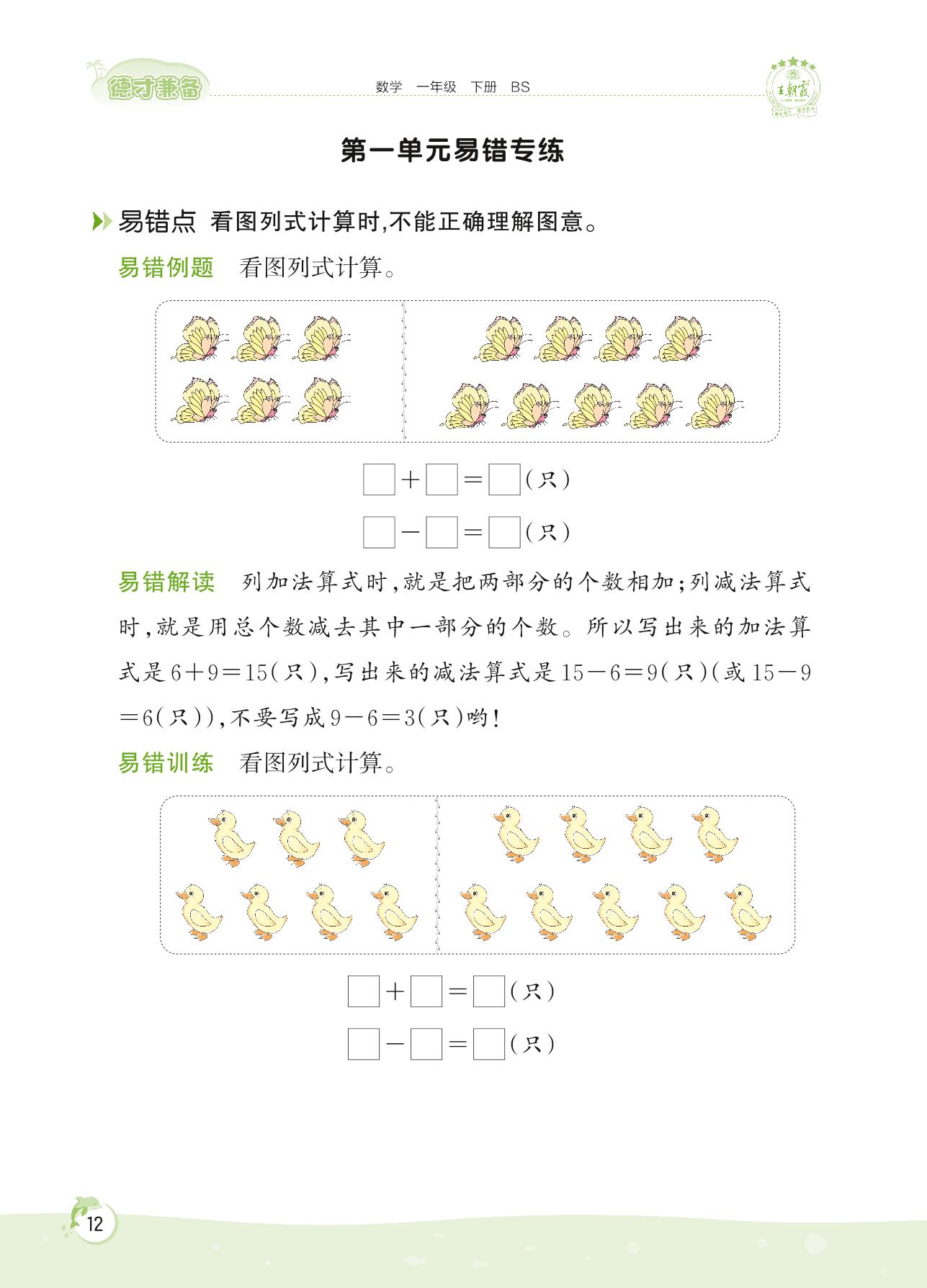 2022下册一年级数学北师版 第一单元 加与减(一)——第一单元易错专练