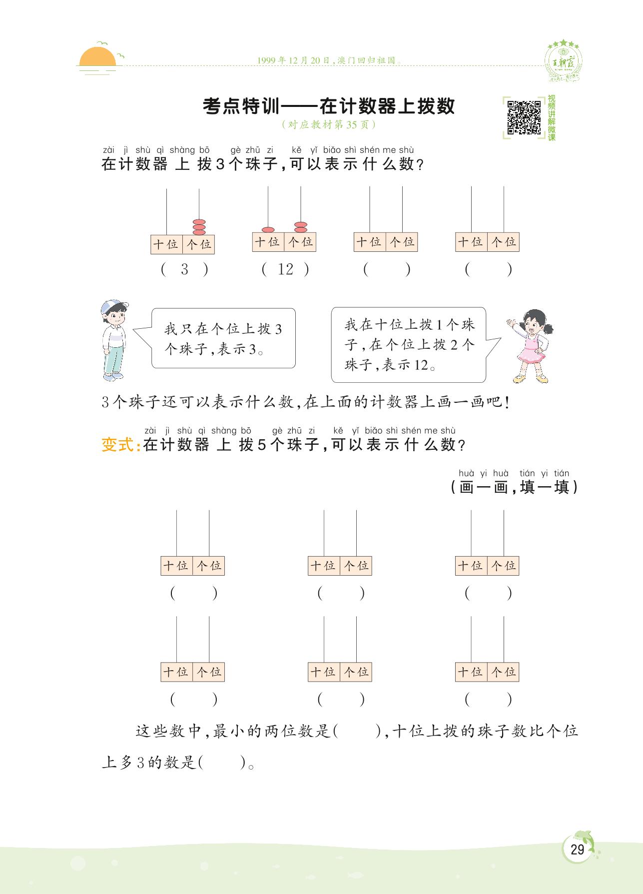 2022下册一年级数学北师版 第三单元 生活中的数——考点特训 在计数器上拨数