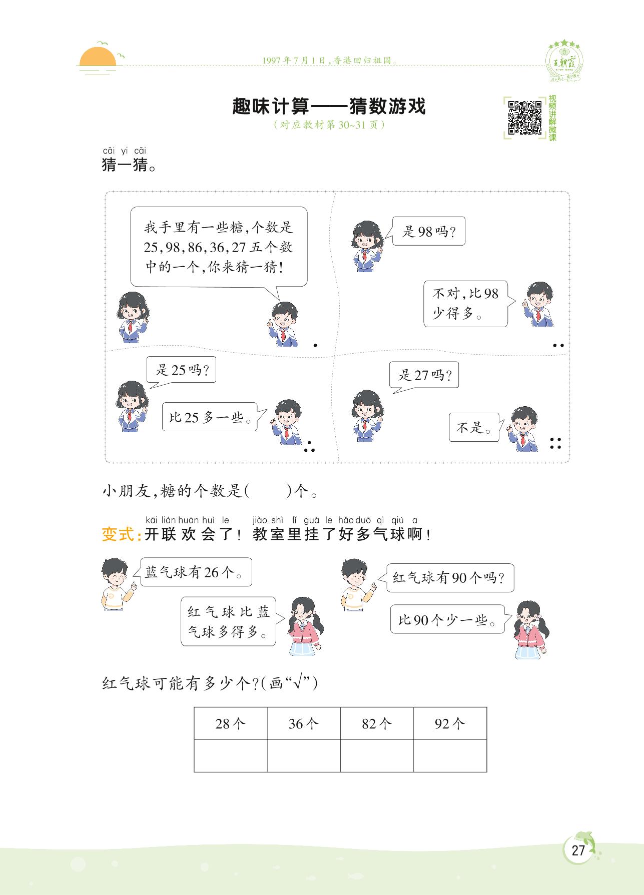 2022下册一年级数学北师版 第三单元 生活中的数——趣味计算 猜数游戏
